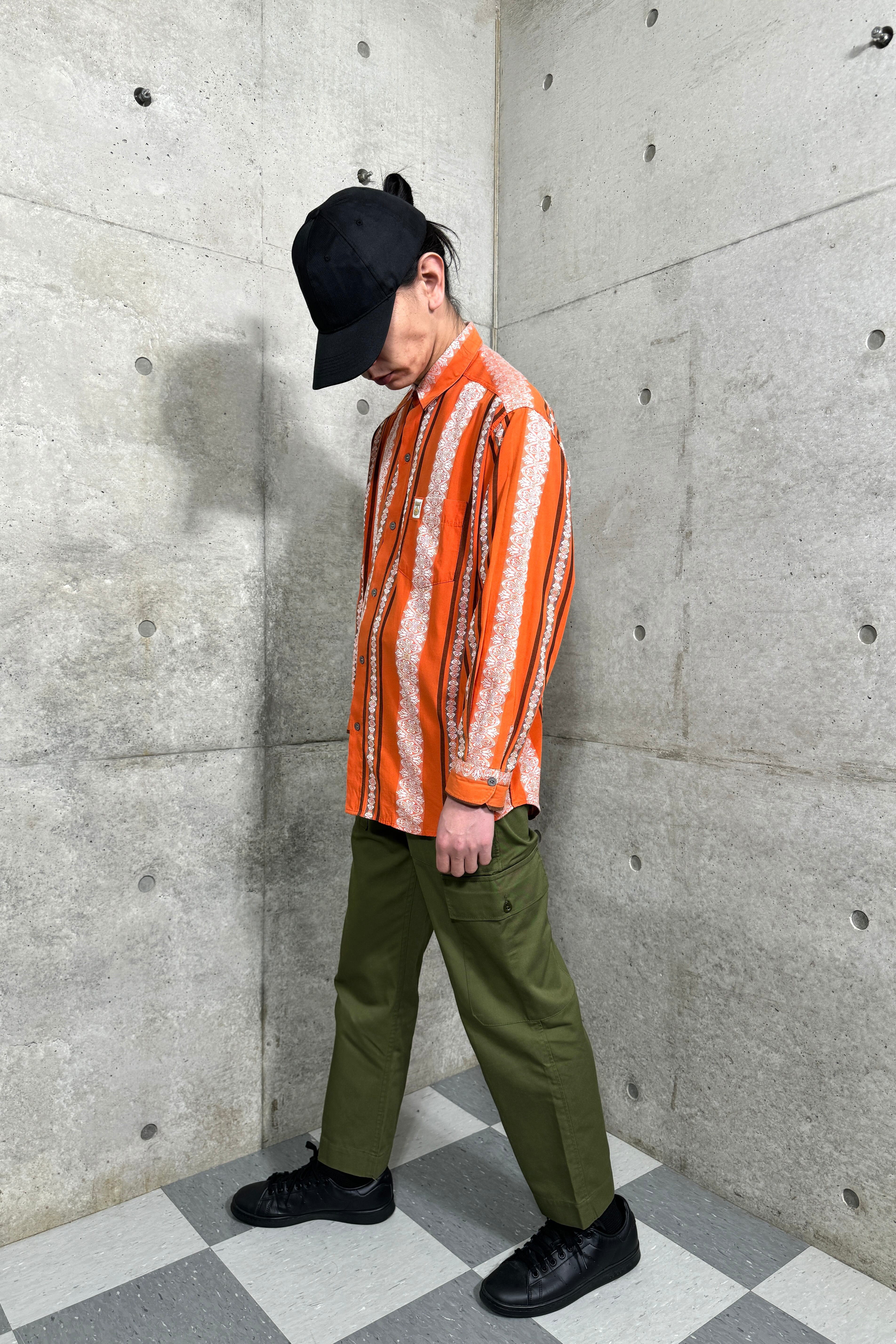 発色の良い綺麗なオレンジボディーに入った白の刺繍、野暮ったく見えがちなエスニックの雰囲気が見事にモードにハマった素晴らしい1着