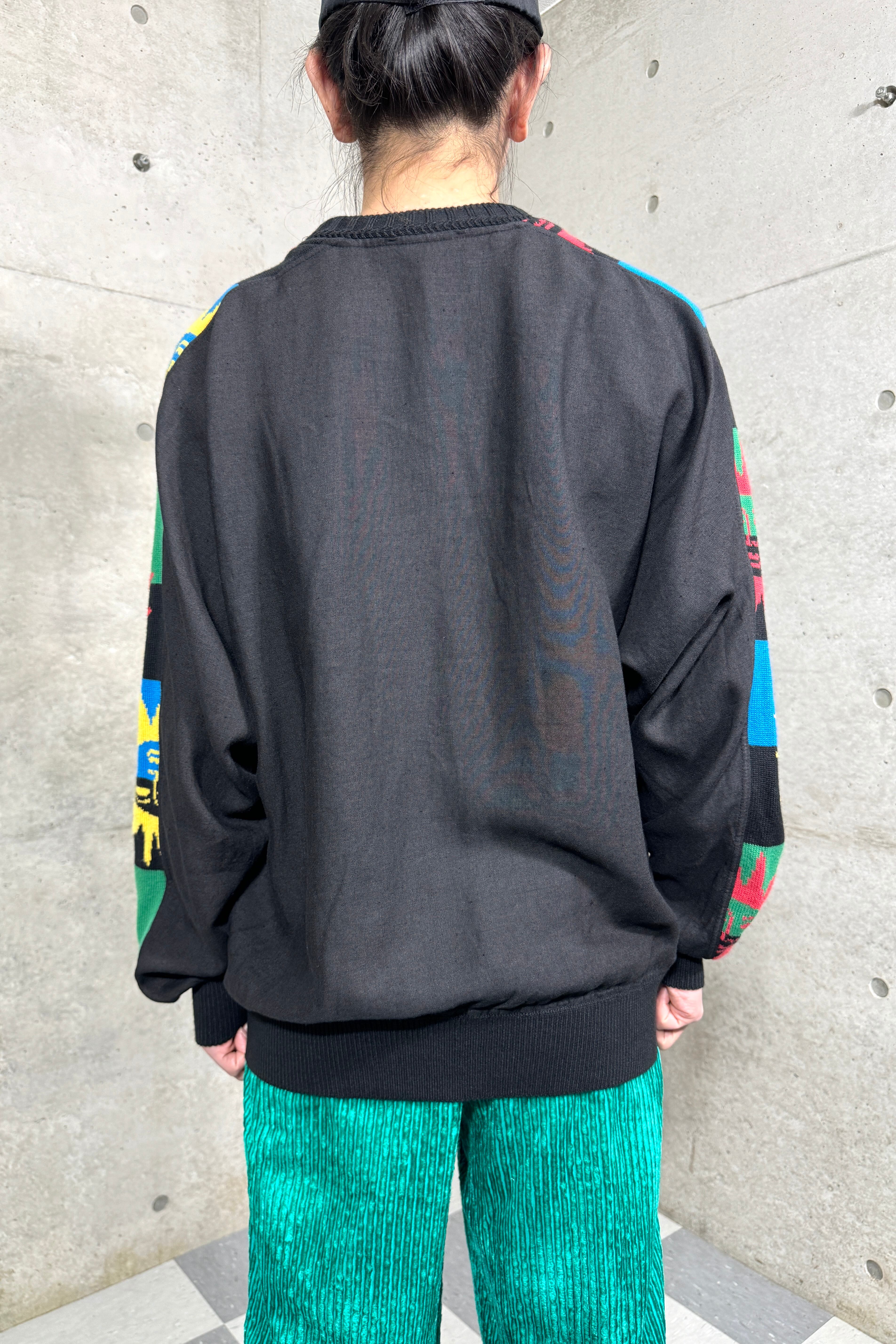リネン×ニットの切替に入った太陽の刺繍、肩から腕にかけてニットに切替られたデザイン製溢れる面白いディテール
