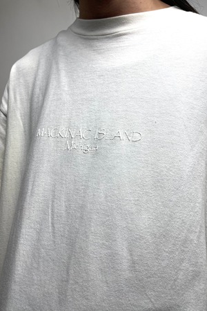 さりげなくというよりほとんど見えないぐらいのメッセージ...ボディーのアイボリーと同じ色味がさらに憎い...真っ白には出ない柔らかさのある上品なTshirt made in USA