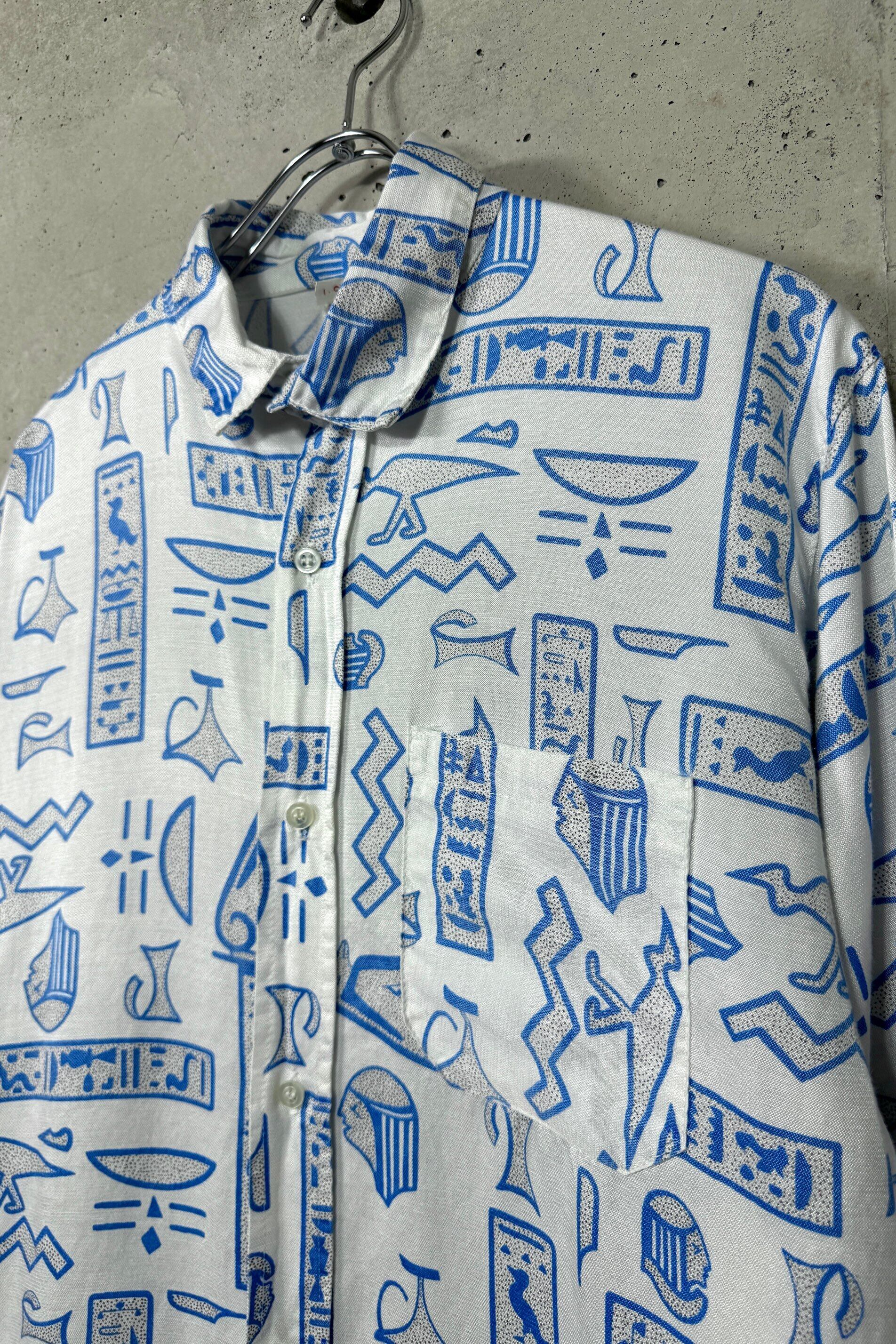 ユニークなエジプトを連想する柄のユーロ製ヴィンテージシャツ