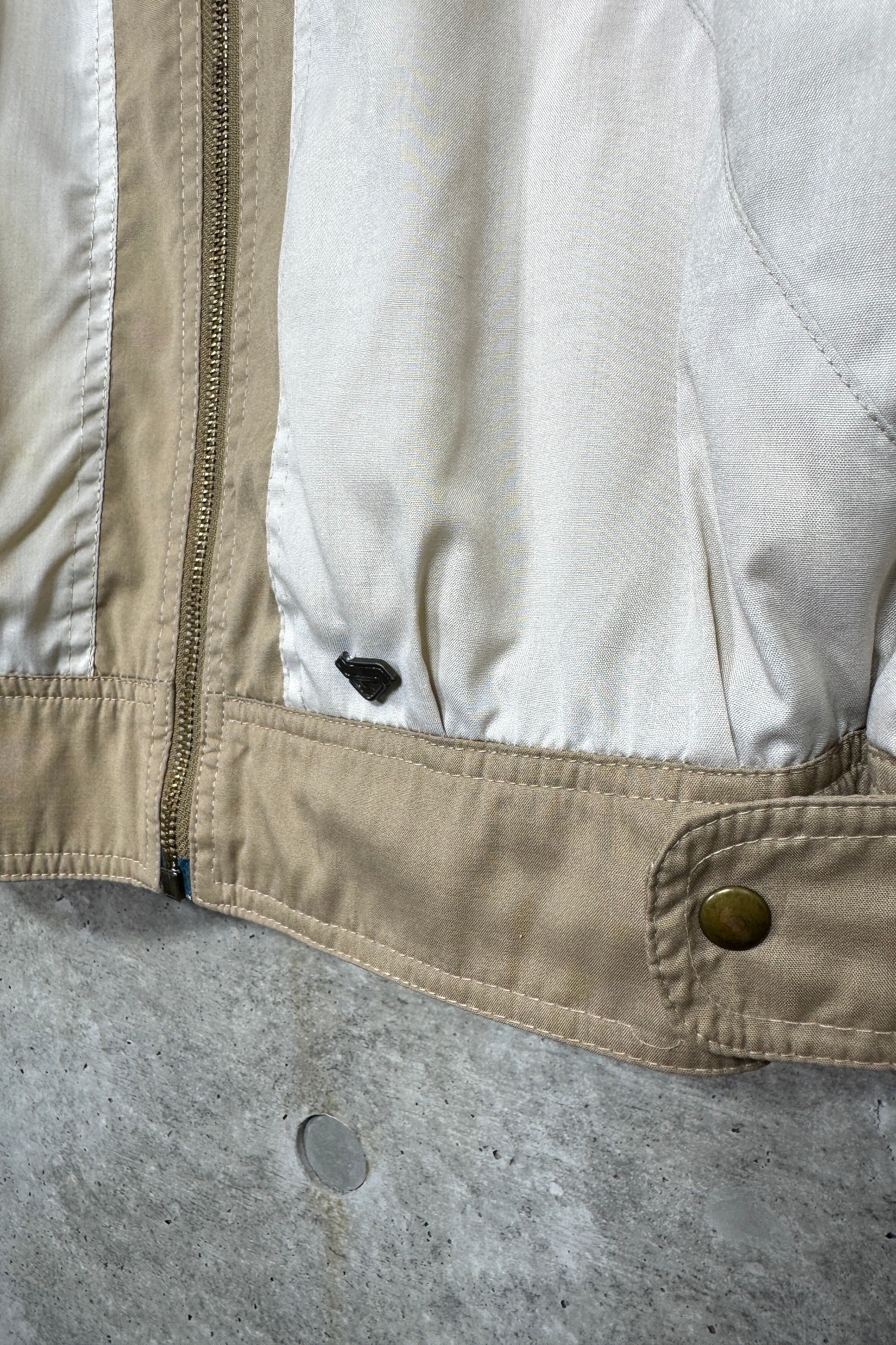 ベージュ×ブラウンのユーロらしい柔らかなカラーにベルトデザイン、取り外し可能な袖とグッとくるデザインが入った素晴らしいブルゾン