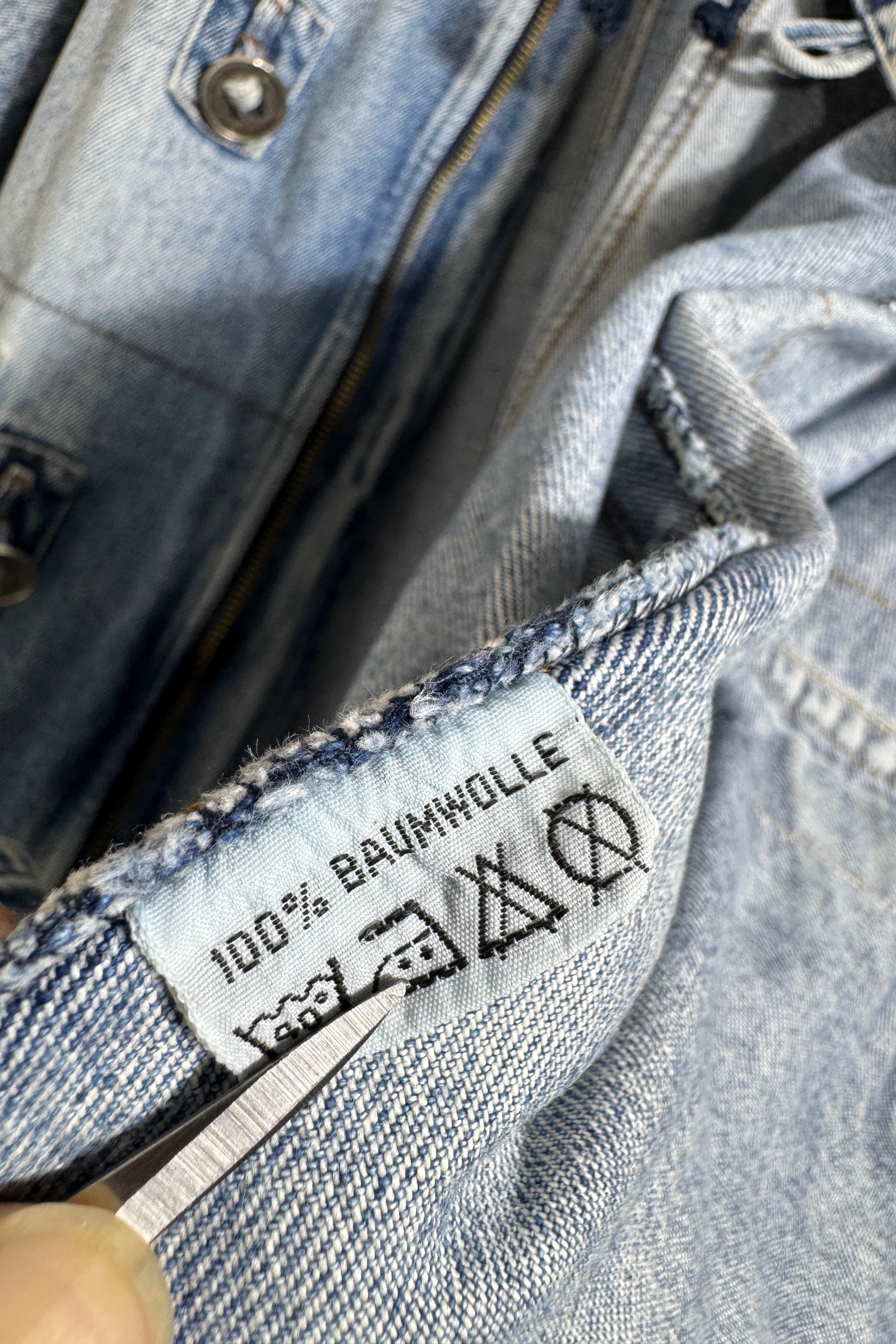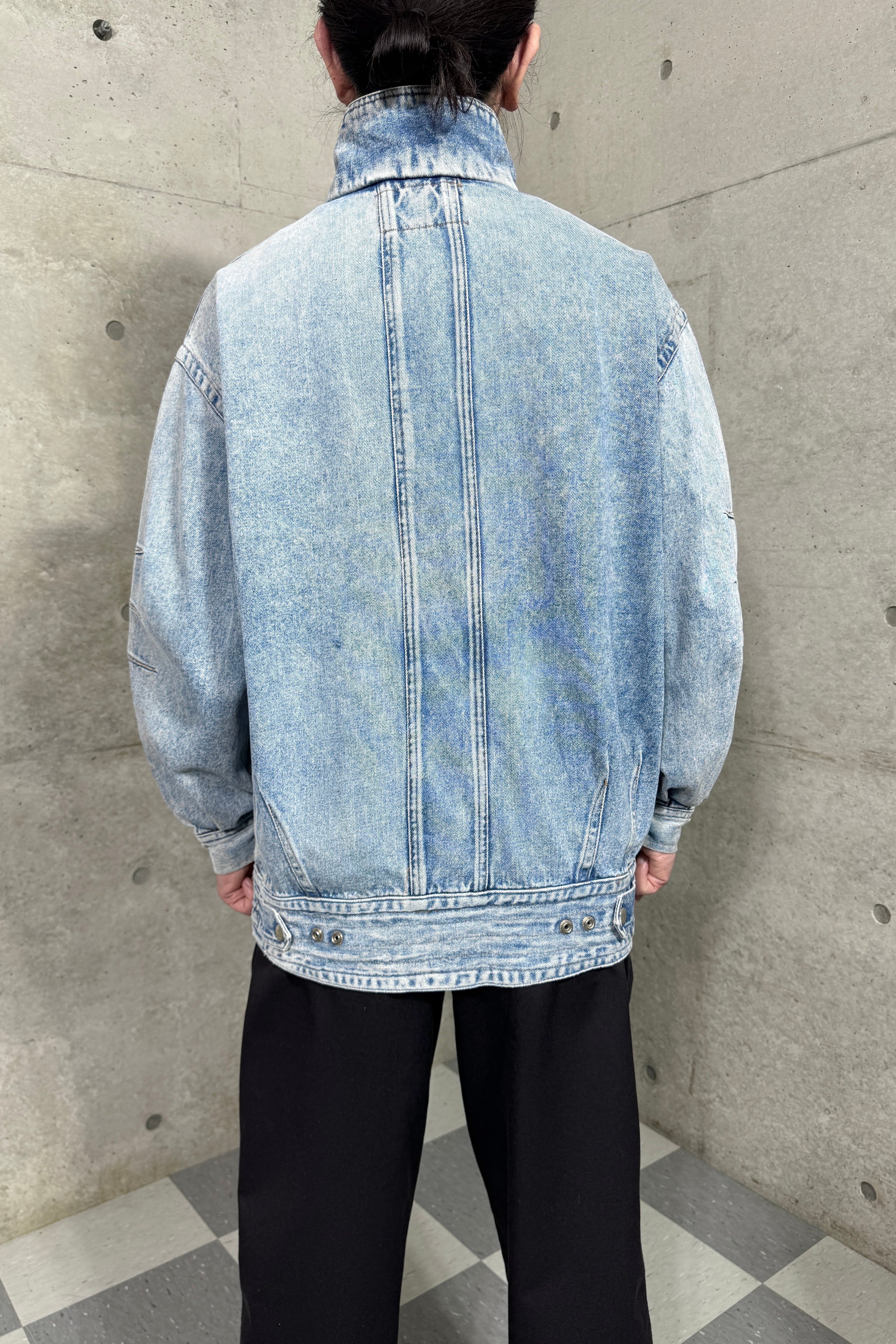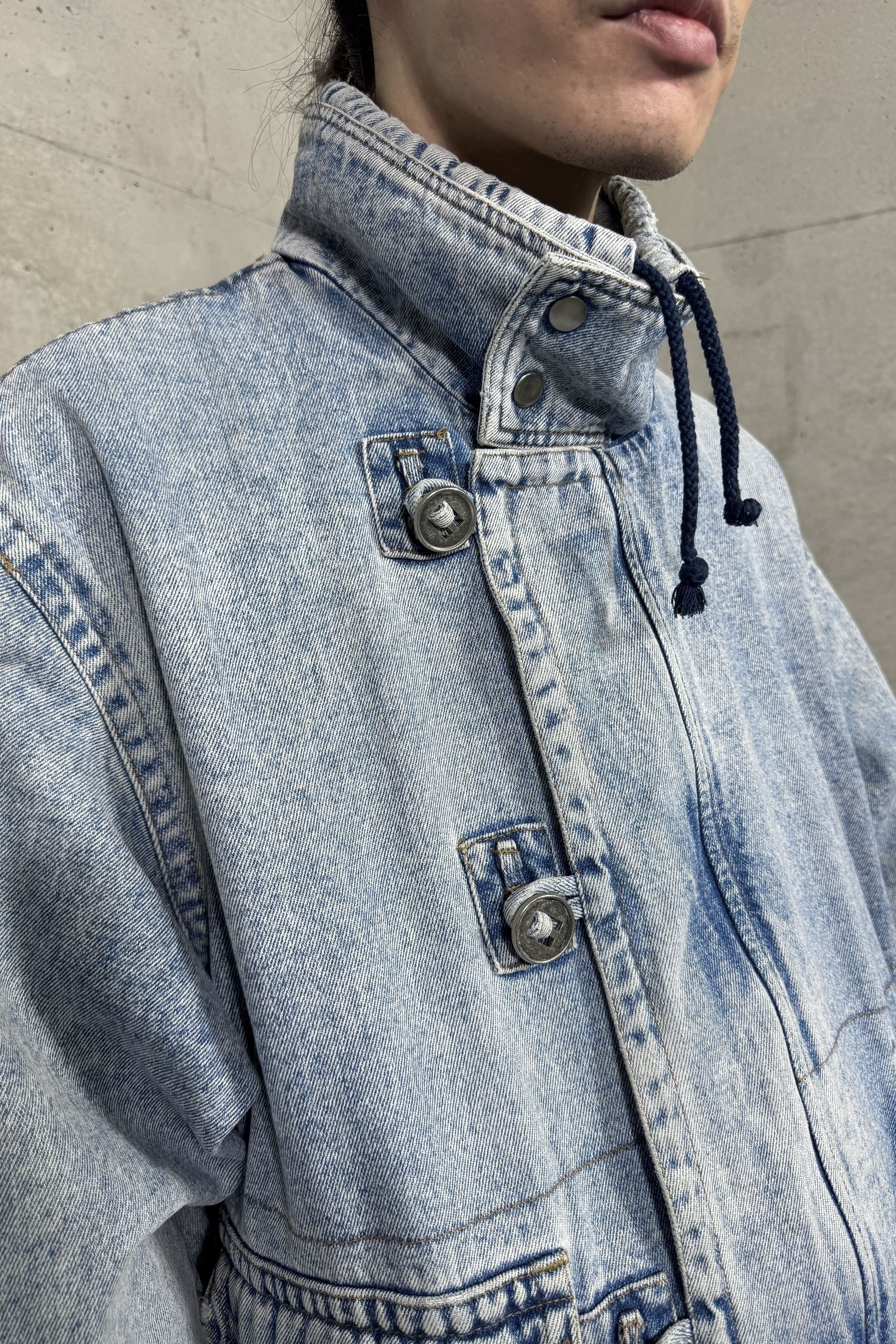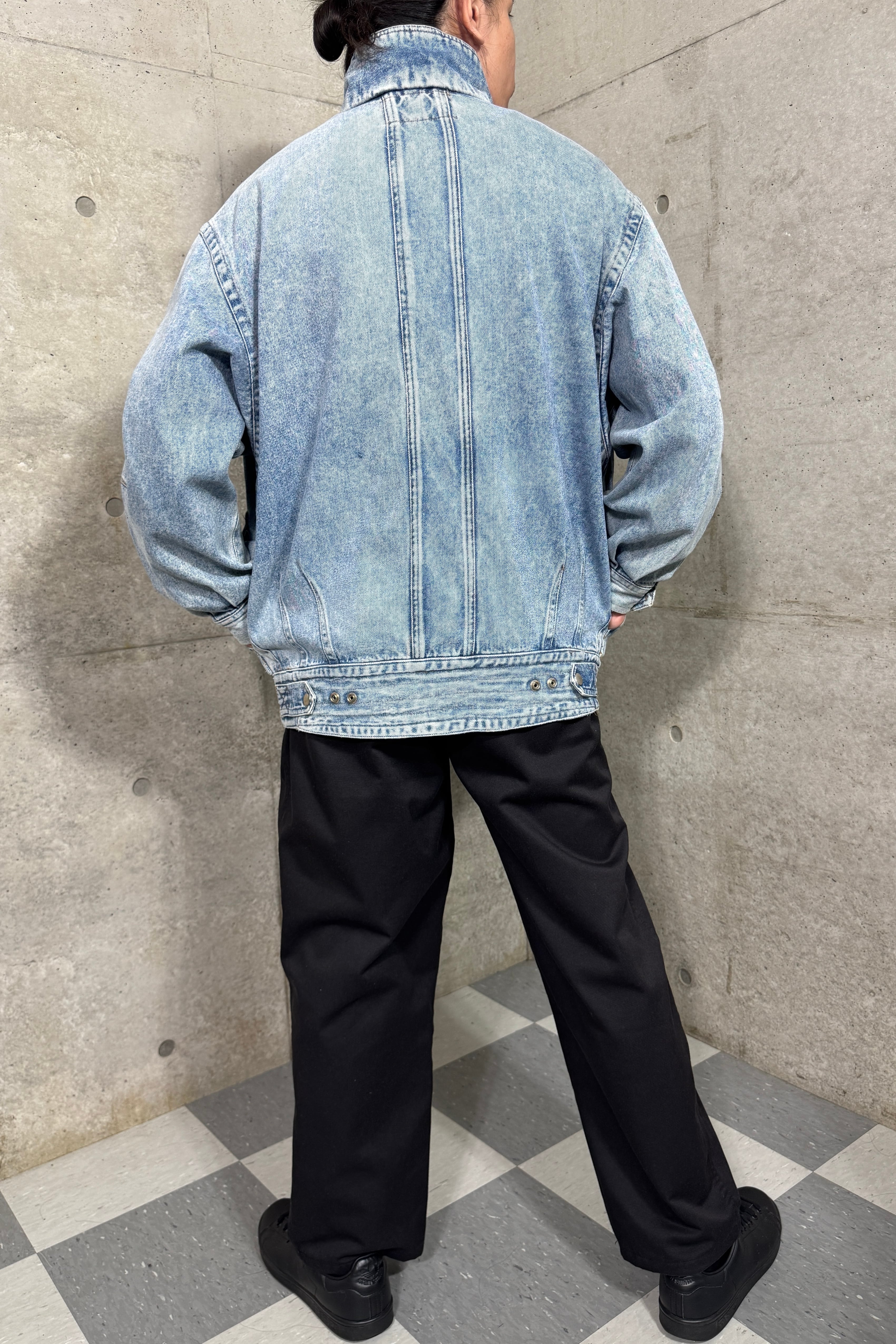 古着のアイテムなので着用感はあります。写真の様に首、ボディー、袖に小さな傷や汚れがございます。デニムの良さとして理解のある方のみ取り引きの方がお願いします。