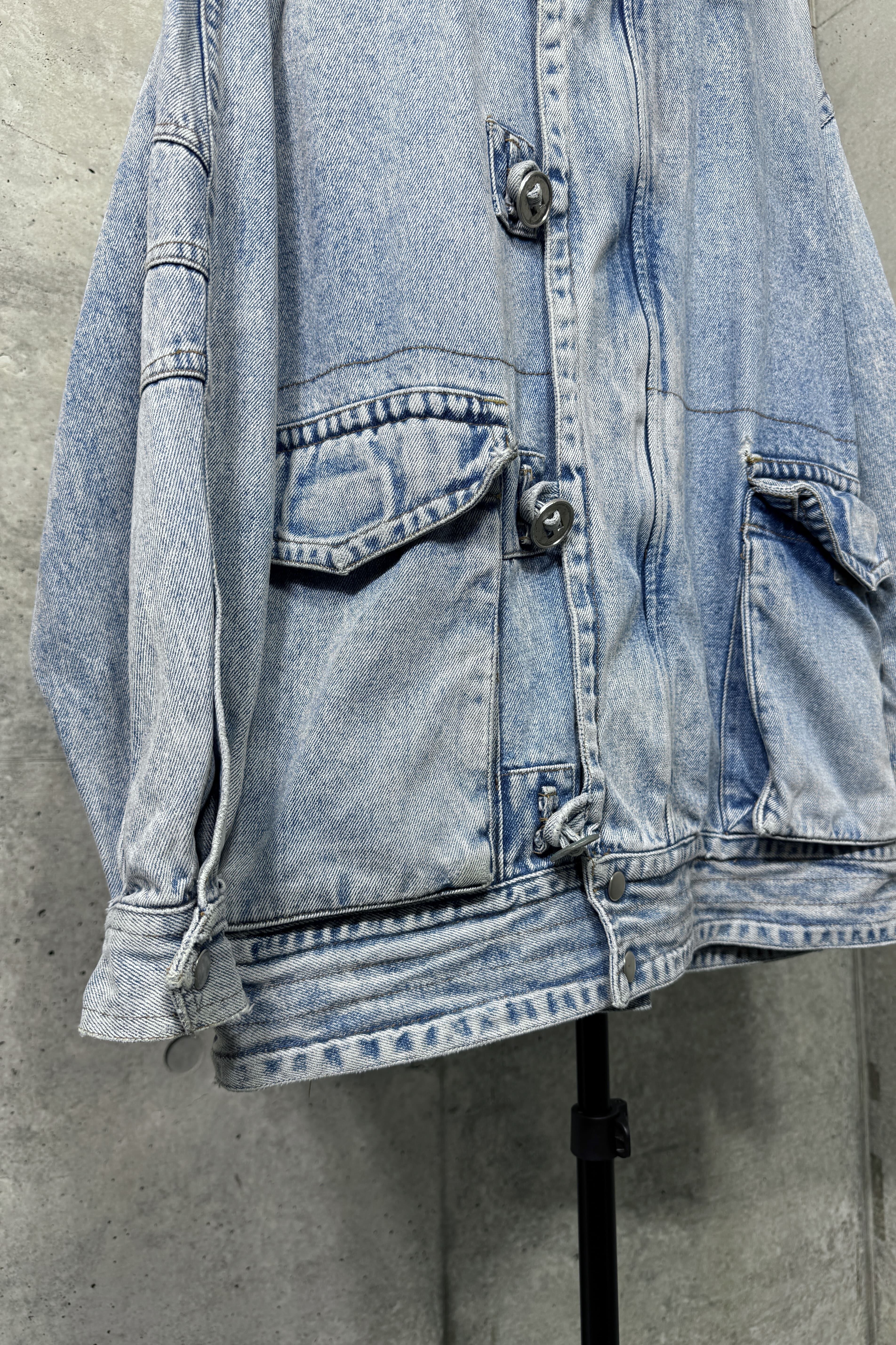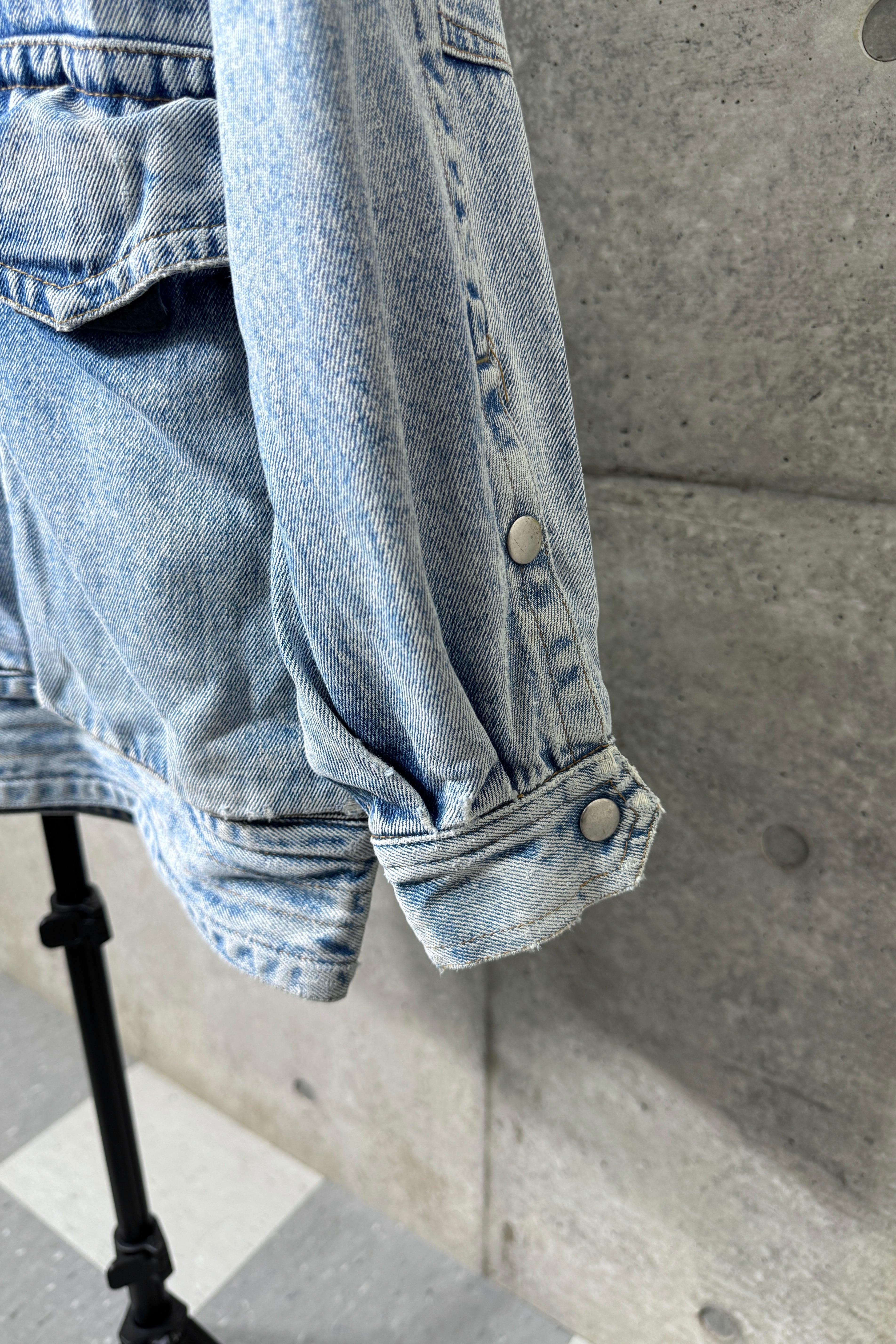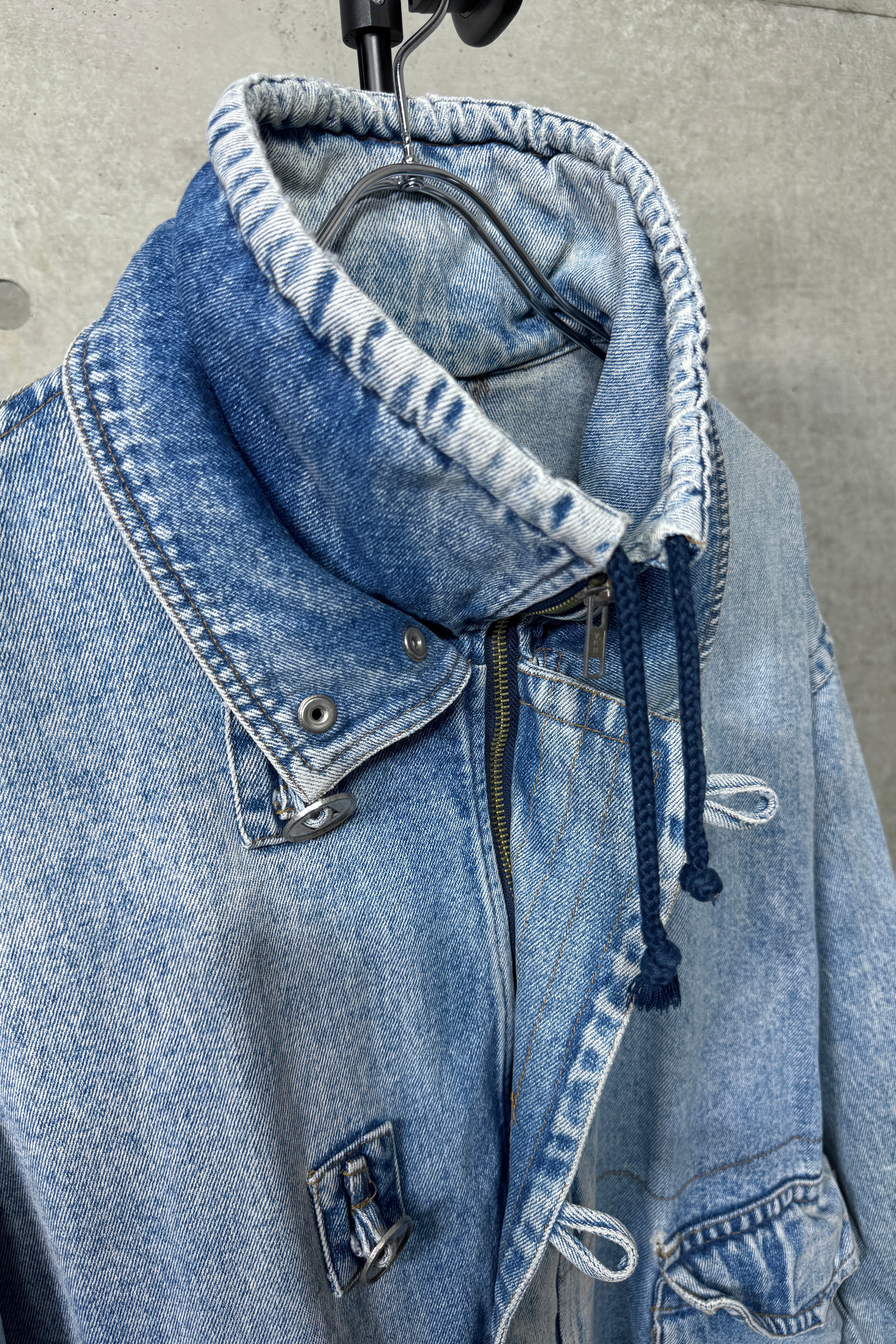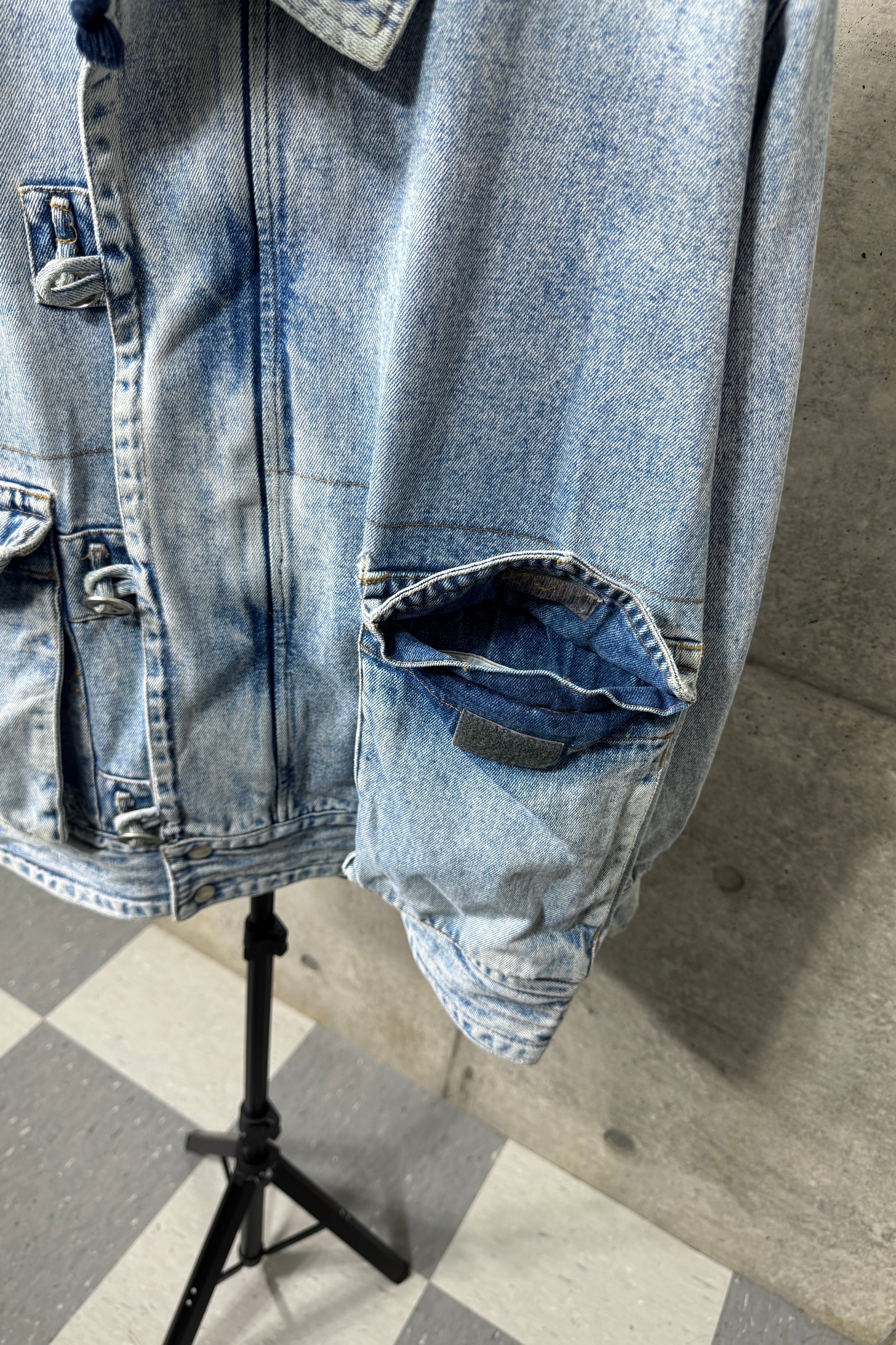 古着のアイテムなので着用感はあります。写真の様に首、ボディー、袖に小さな傷や汚れがございます。デニムの良さとして理解のある方のみ取り引きの方がお願いします。