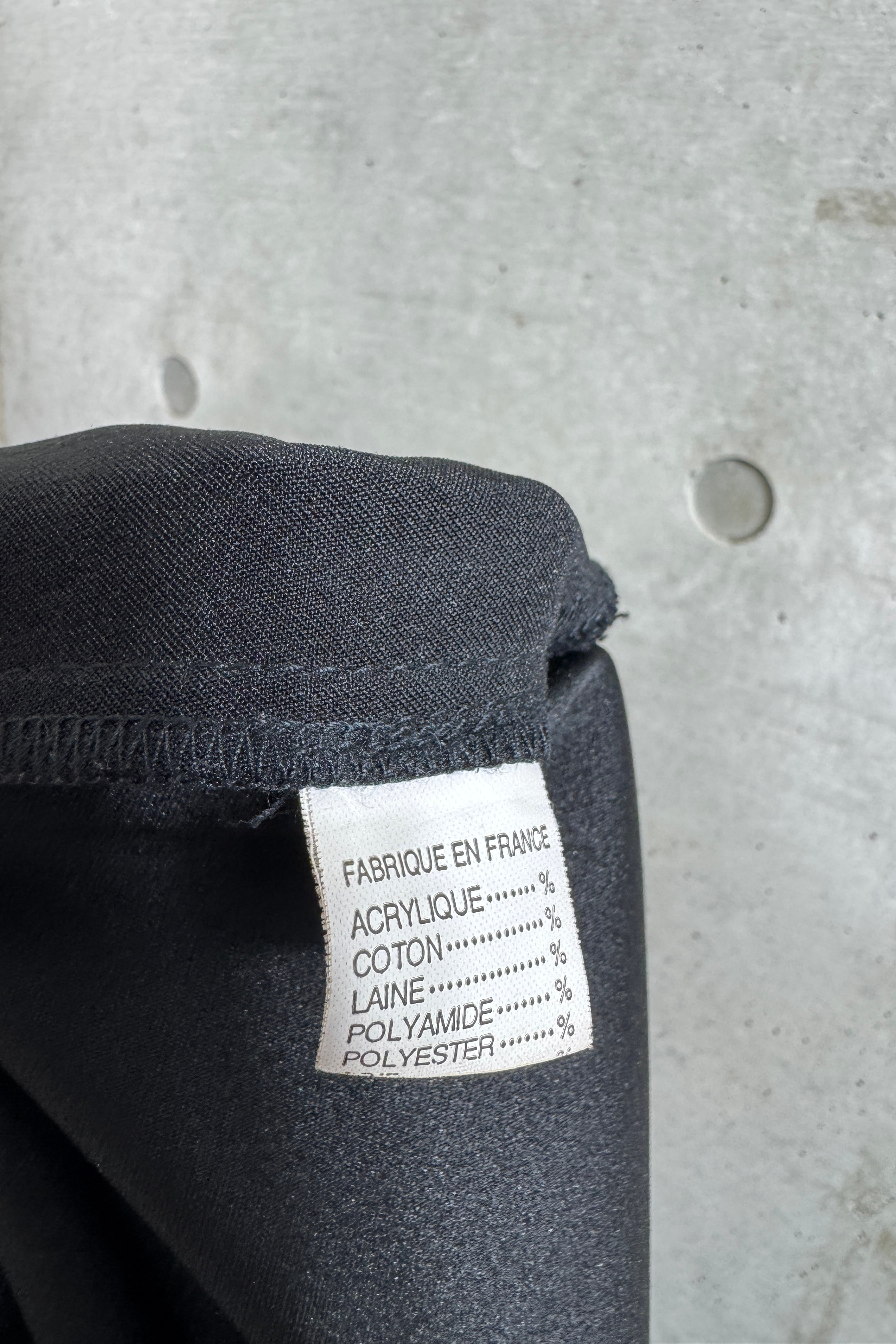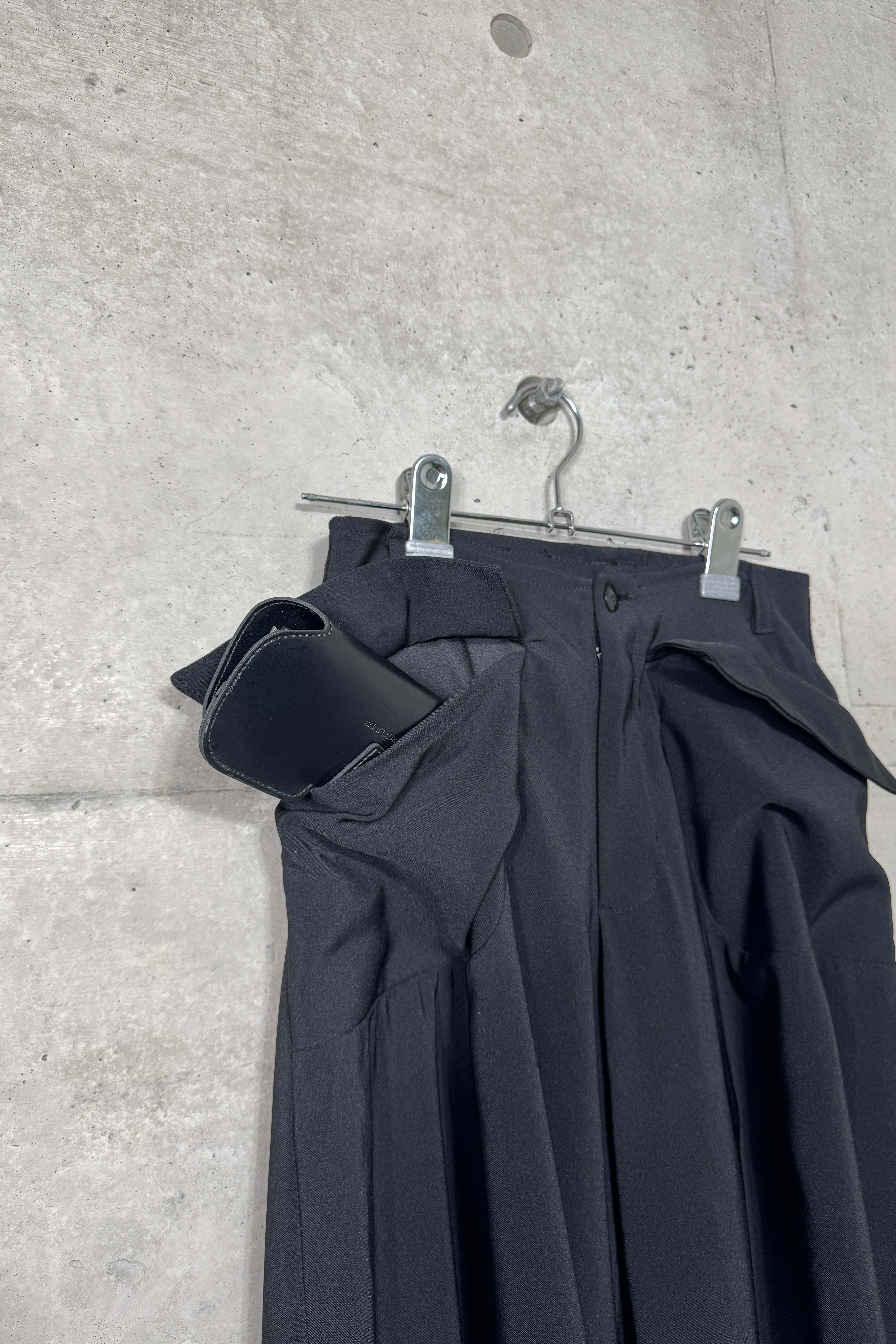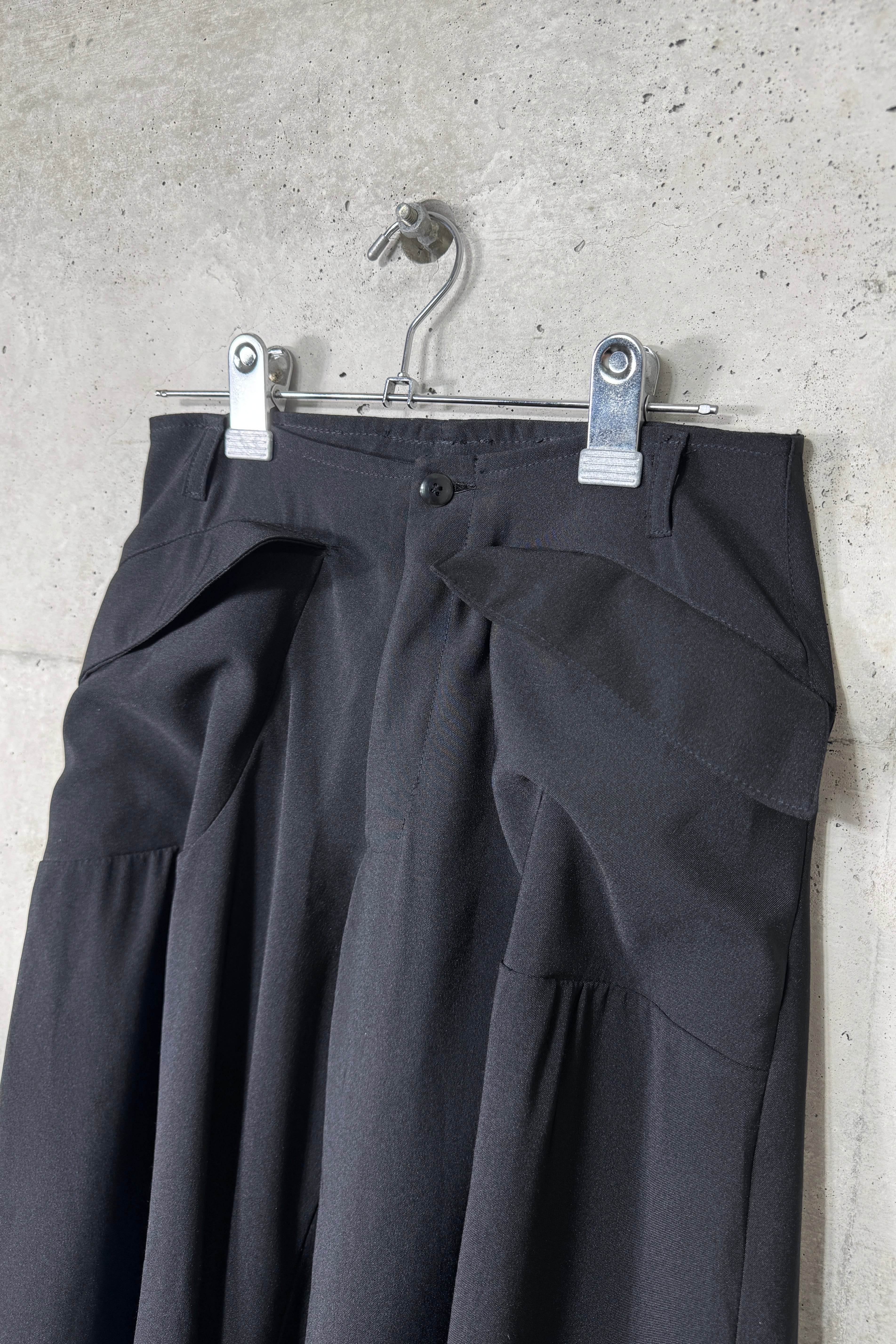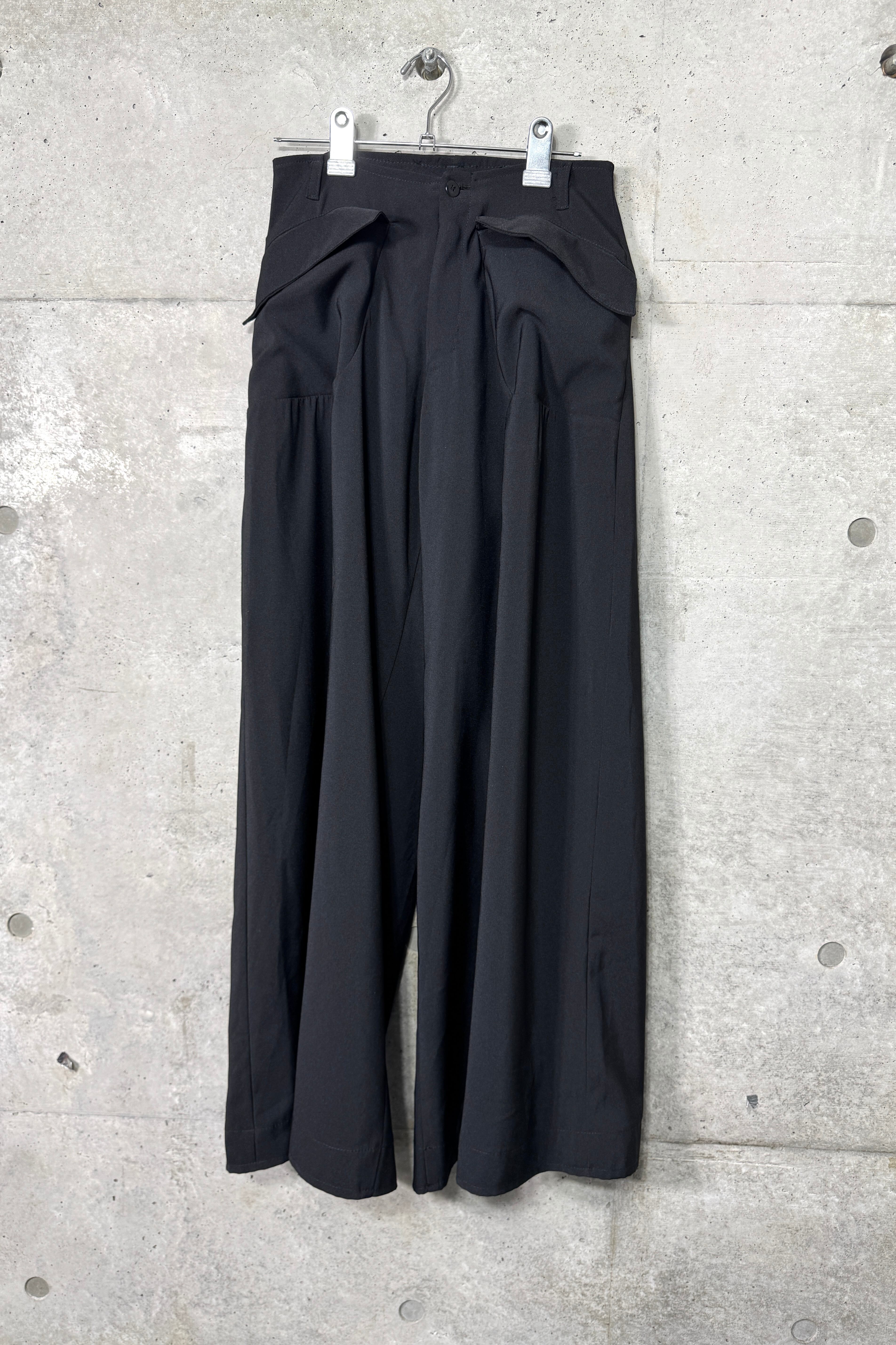 探すと全くないシューズが隠れるぐらいの太さの裾、着用するとドレープが生まれる面白いデザイン。