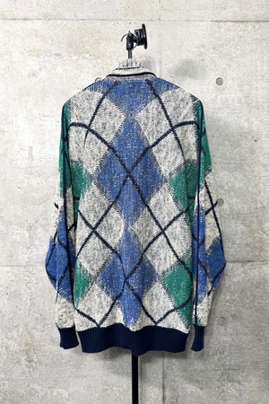 キャンバスに落書きした様なユニークなアーガイル柄。僕の中でショールカラーニットは上品な大人が着るもののイメージが強く中々取り入れるのが難しい印象でしたが、これはさらっと着やすいです。