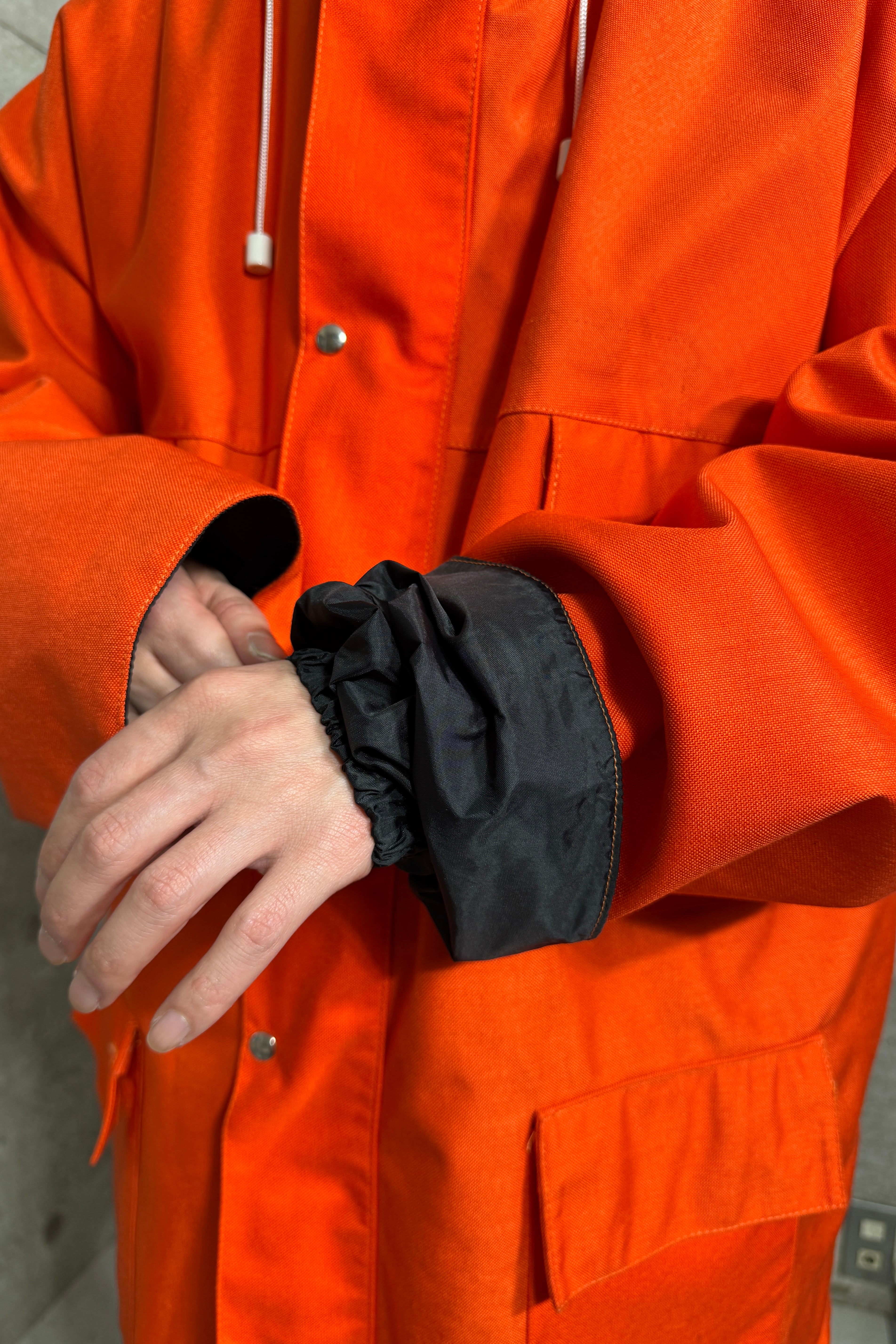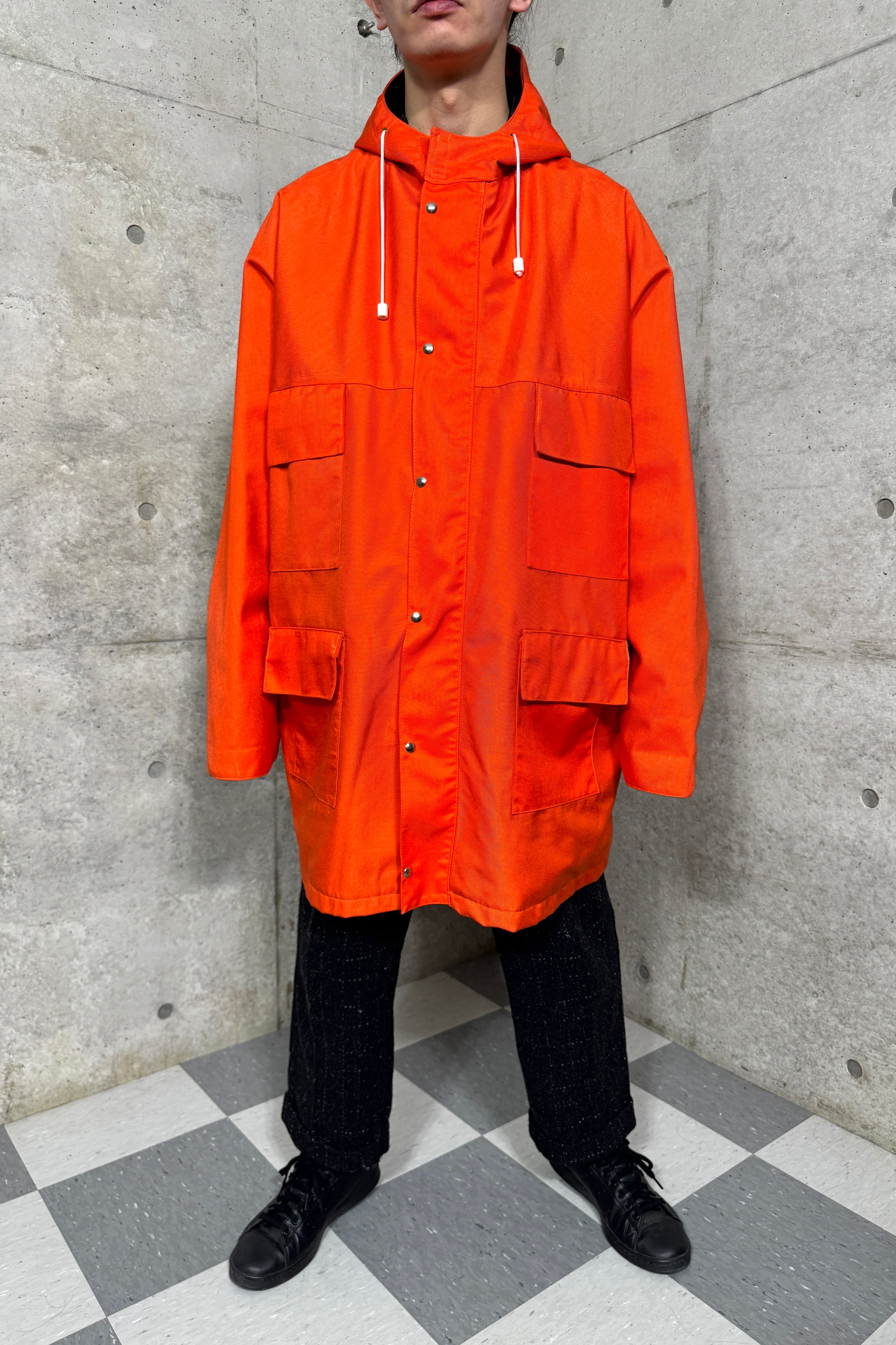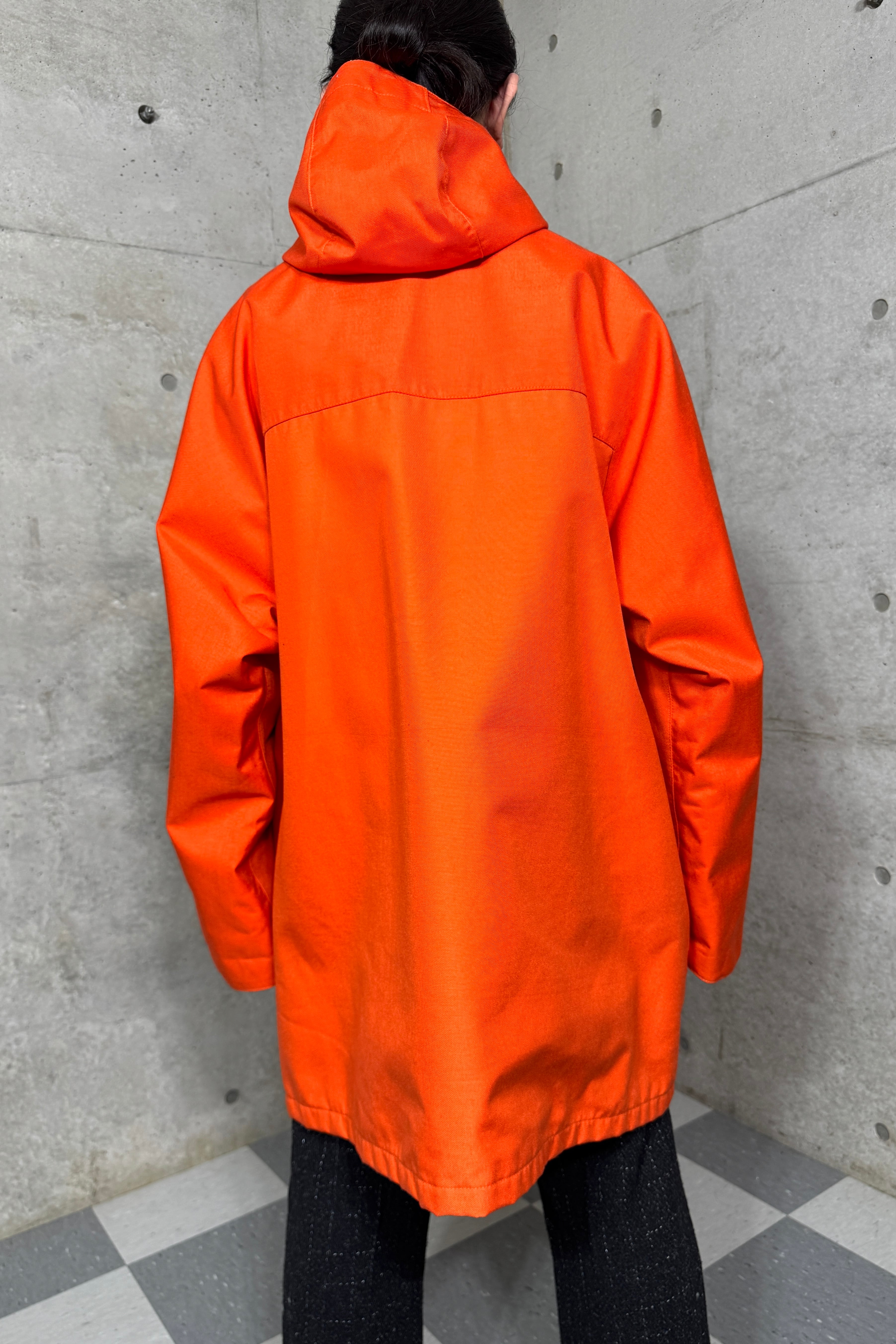 ディーラーの方いわくイギリスの物。アメリカ物との違いがいまいちわからないがハーフコートの様なオーバーなシルエットに目を惹くオレンジカラーそれだけでも気分が上がる。