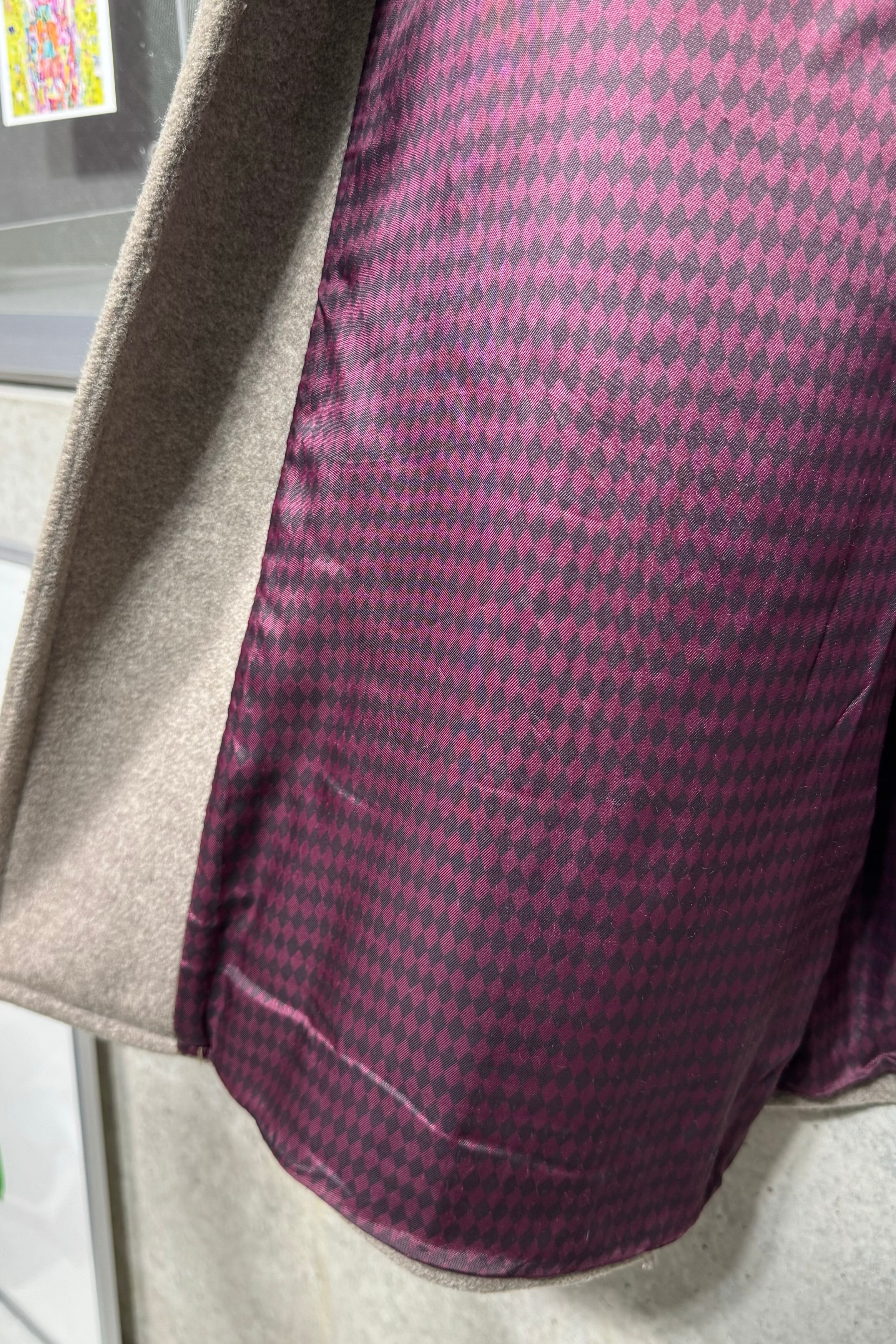とても柔らかなウールの素材感、セットインスリーブですが肩が綺麗に落ちるぐらいのオーバーなシルエット、極めつけは素晴らしい裏地。