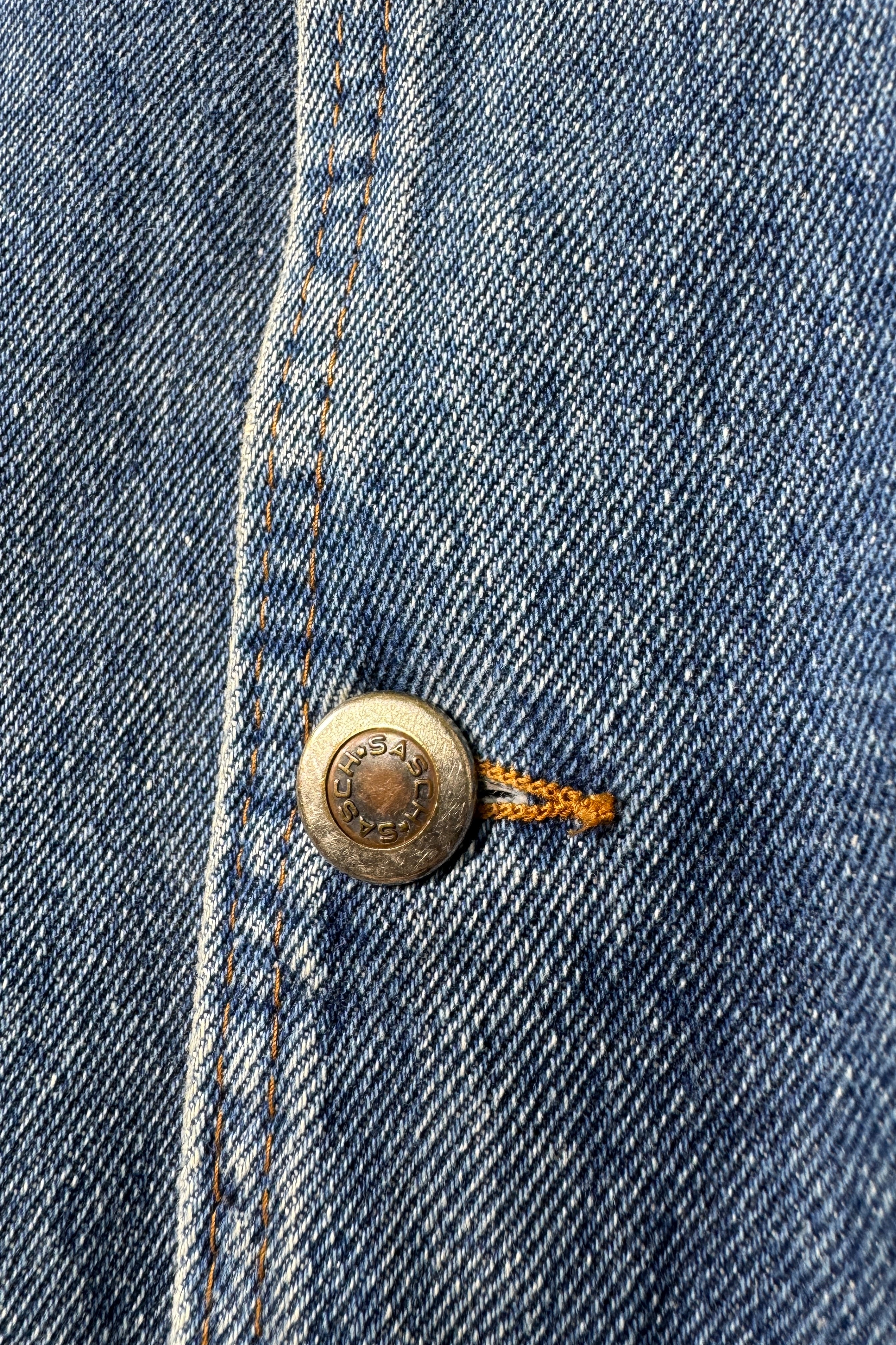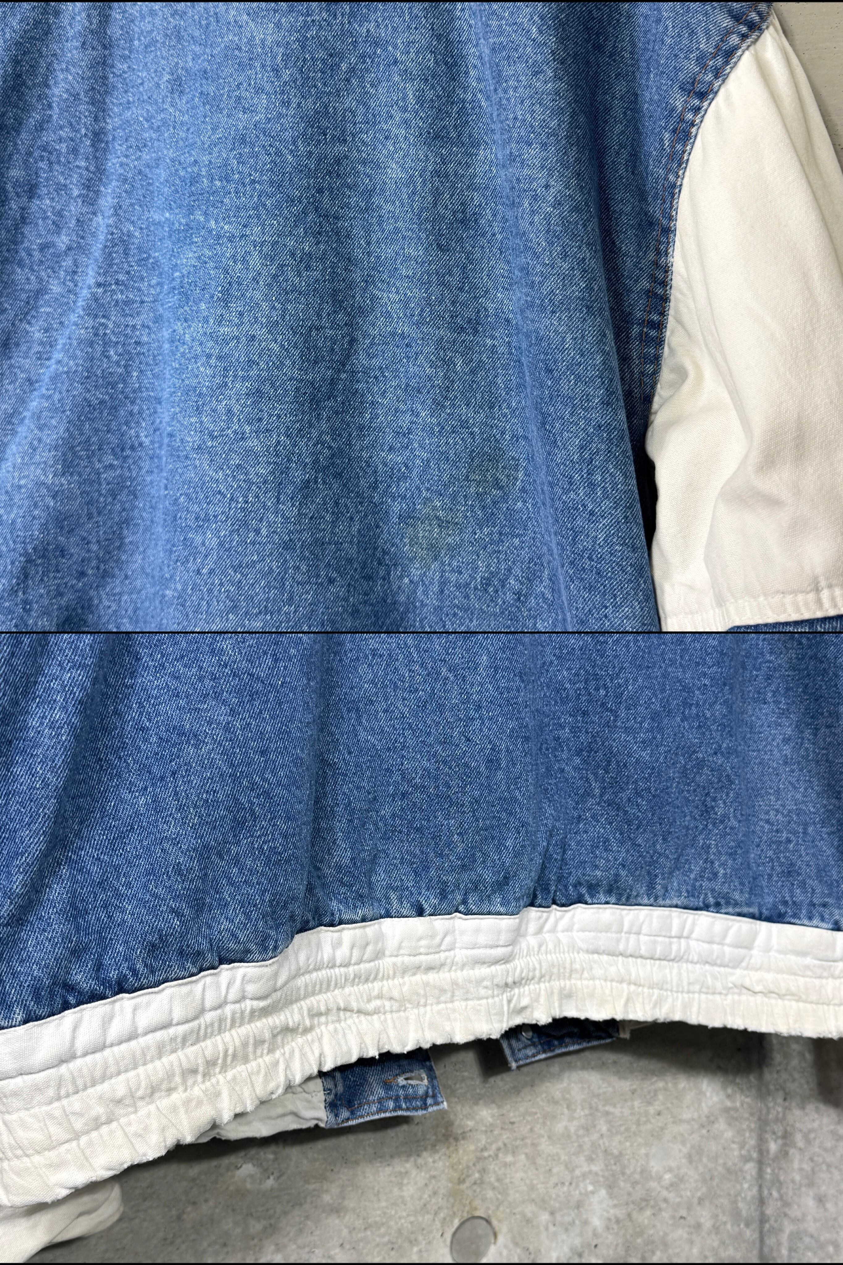 古着のアイテムなので着用感はあります。写真の箇所背中・腕、袖に汚れがあり袖と丈にスレやダメージがあります。使用感のあるデニムといった感じです。古着に理解のある方のみ取り引きの方がお願いします。