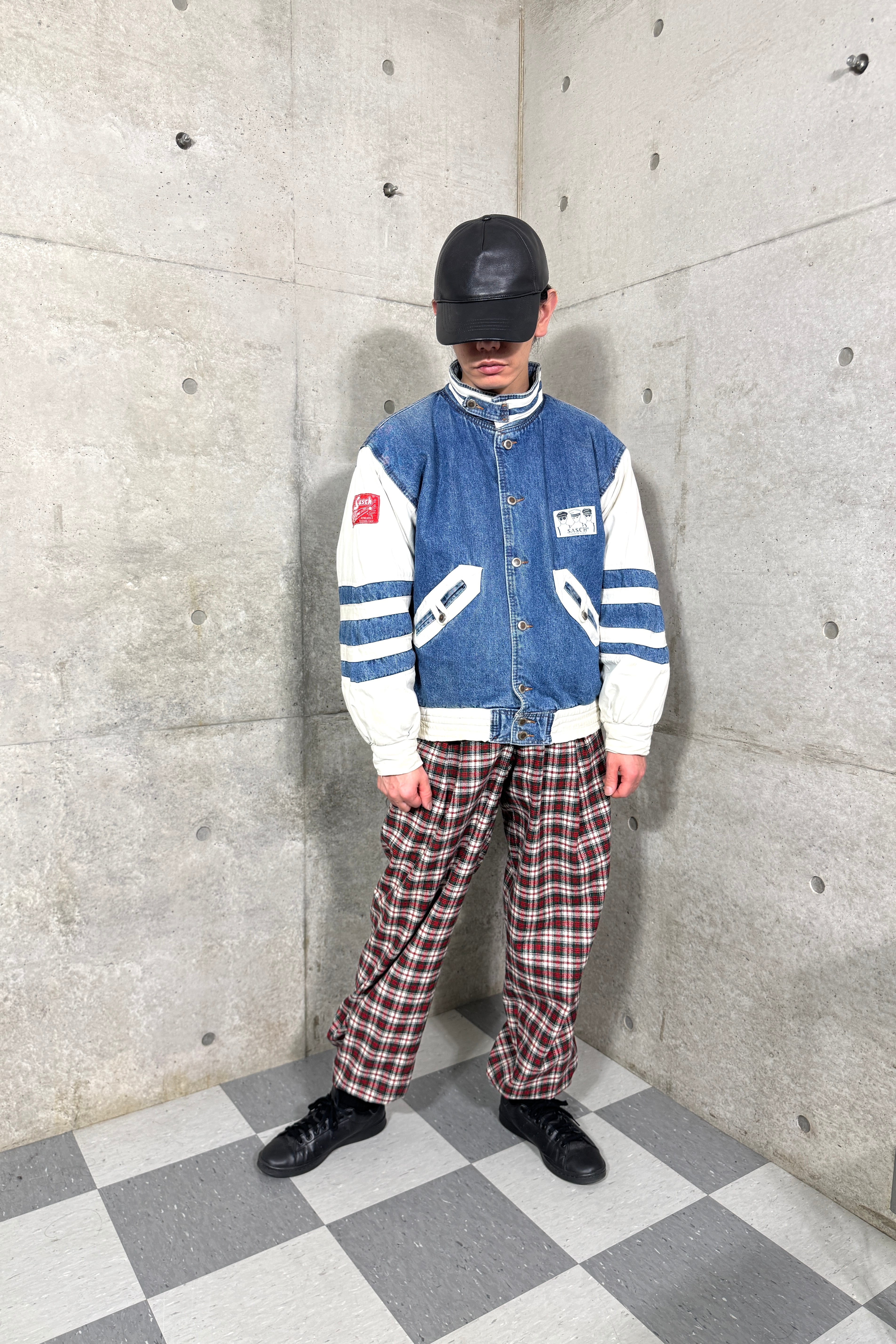 短めの着丈、太めのアームと着ると丸いシルエットになります。デニム地と白の相性の良い発色、cuteなパッチも◎