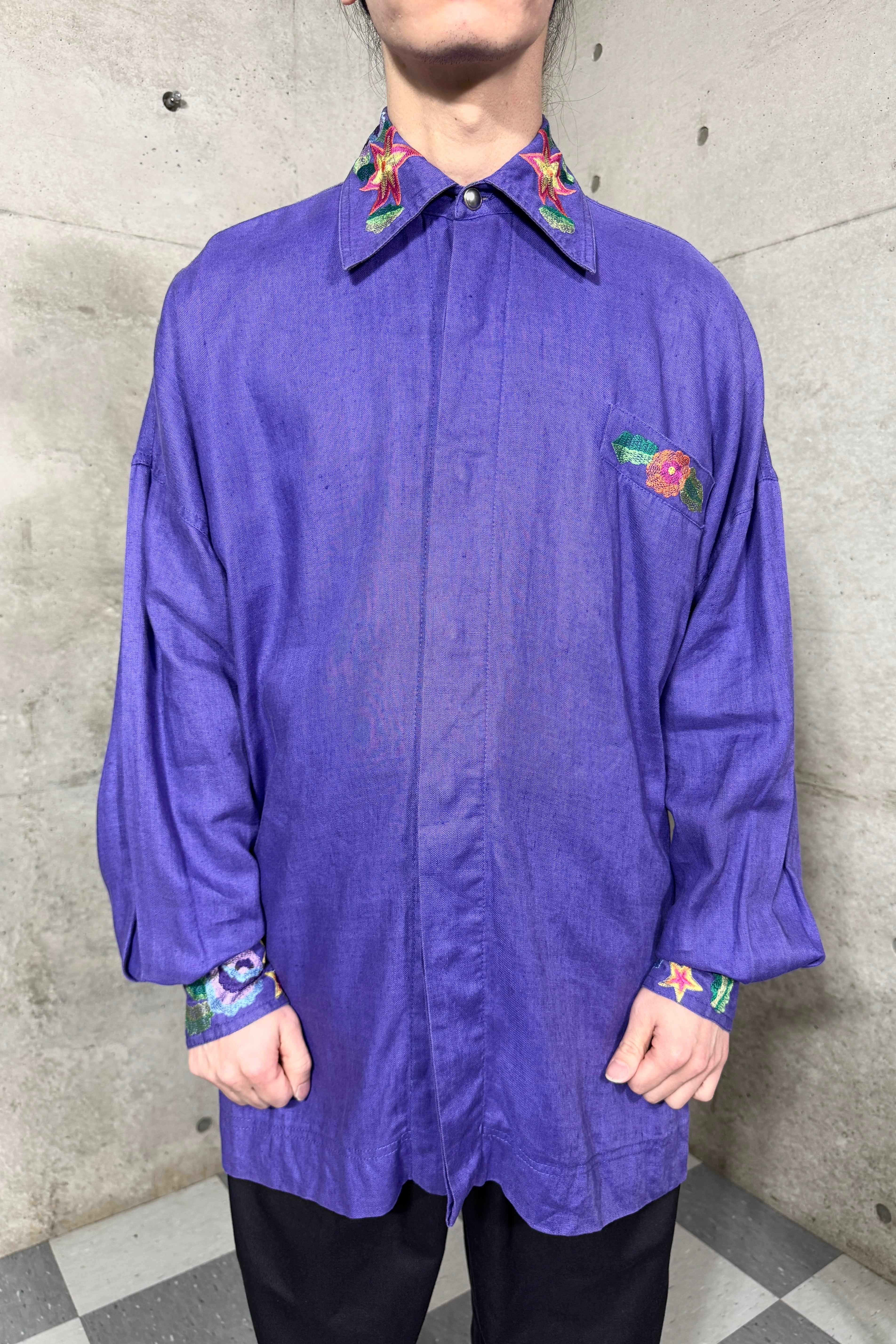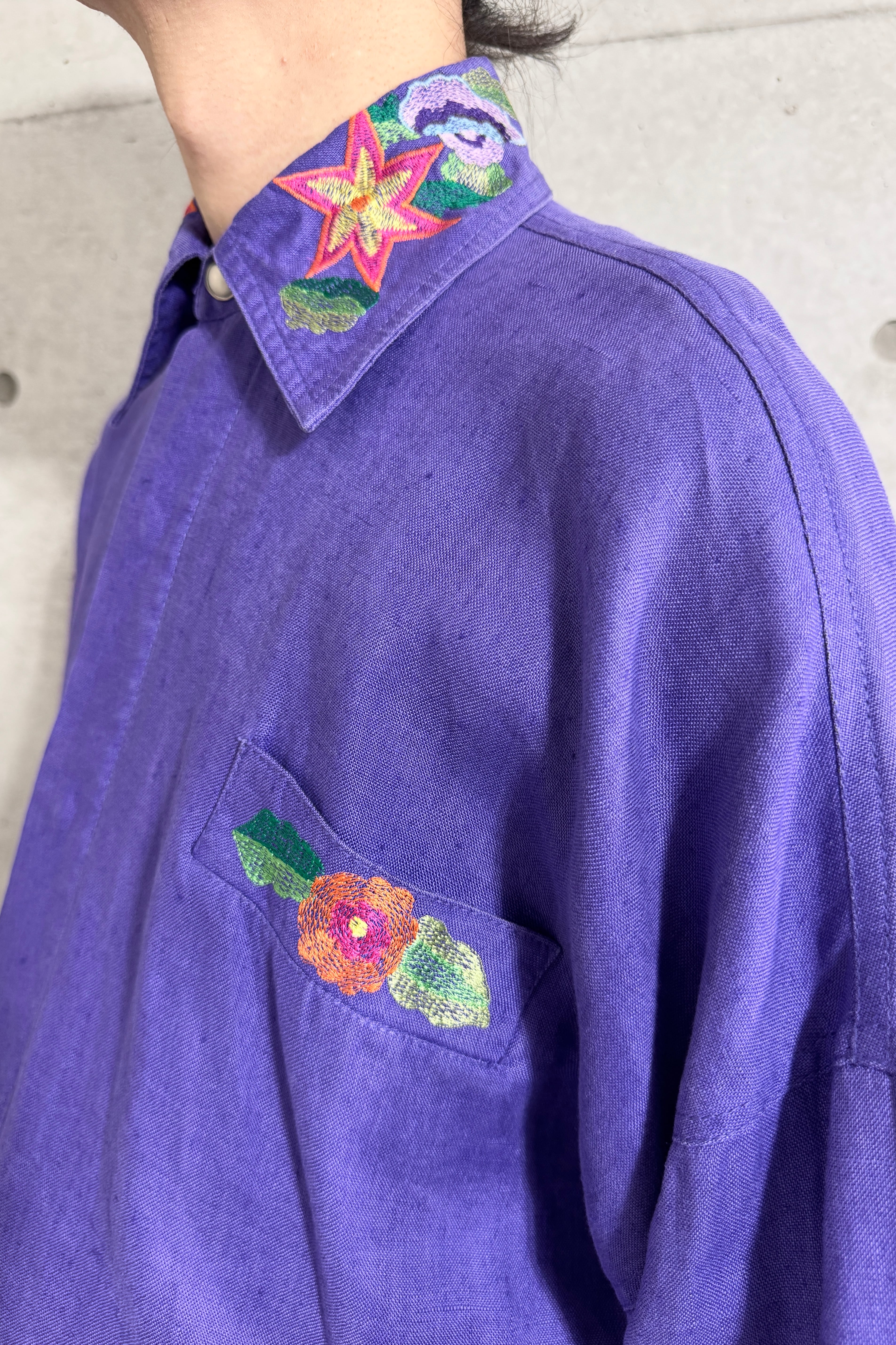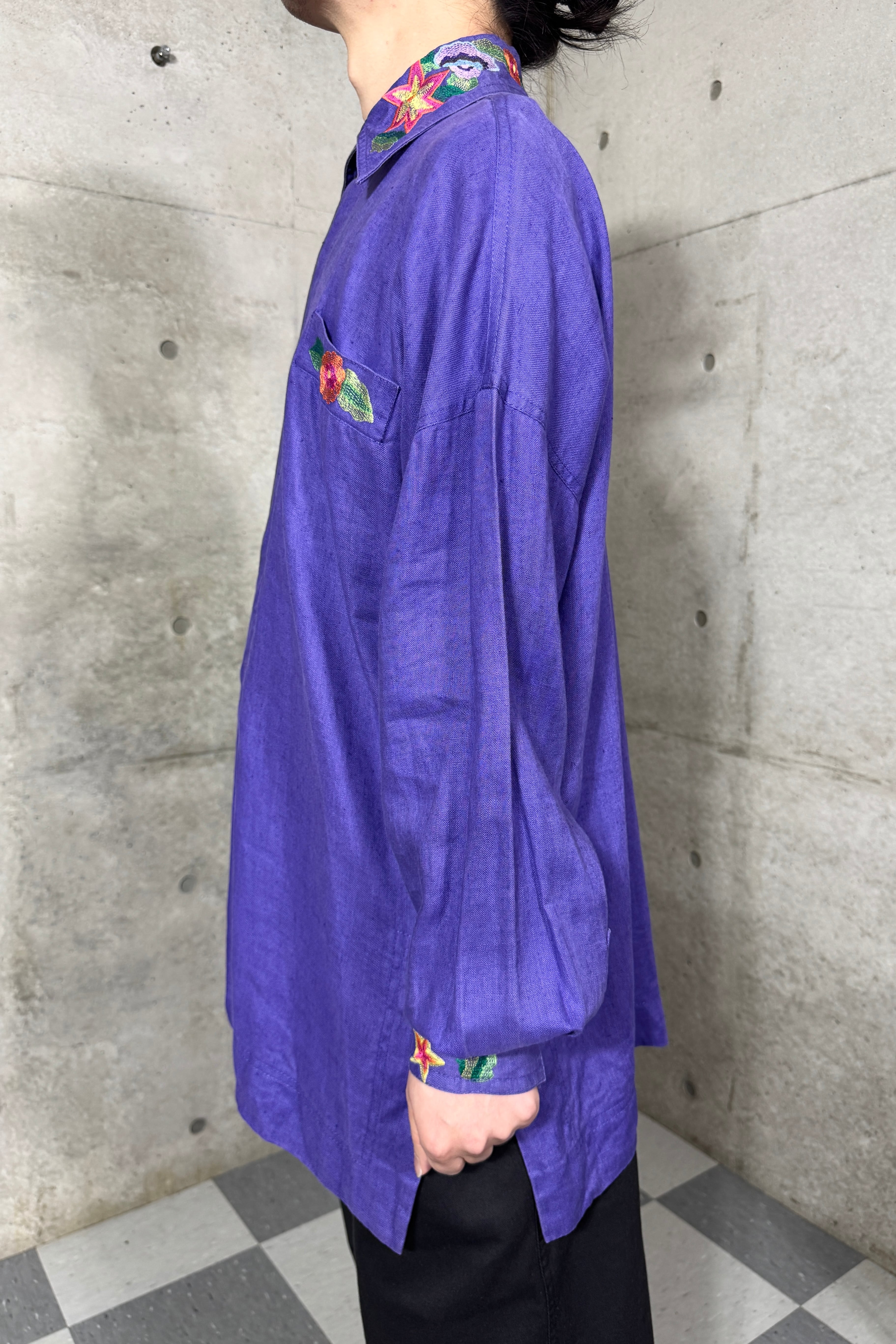 柔らかいリネン素材に刺繍が入った面白いシャツ