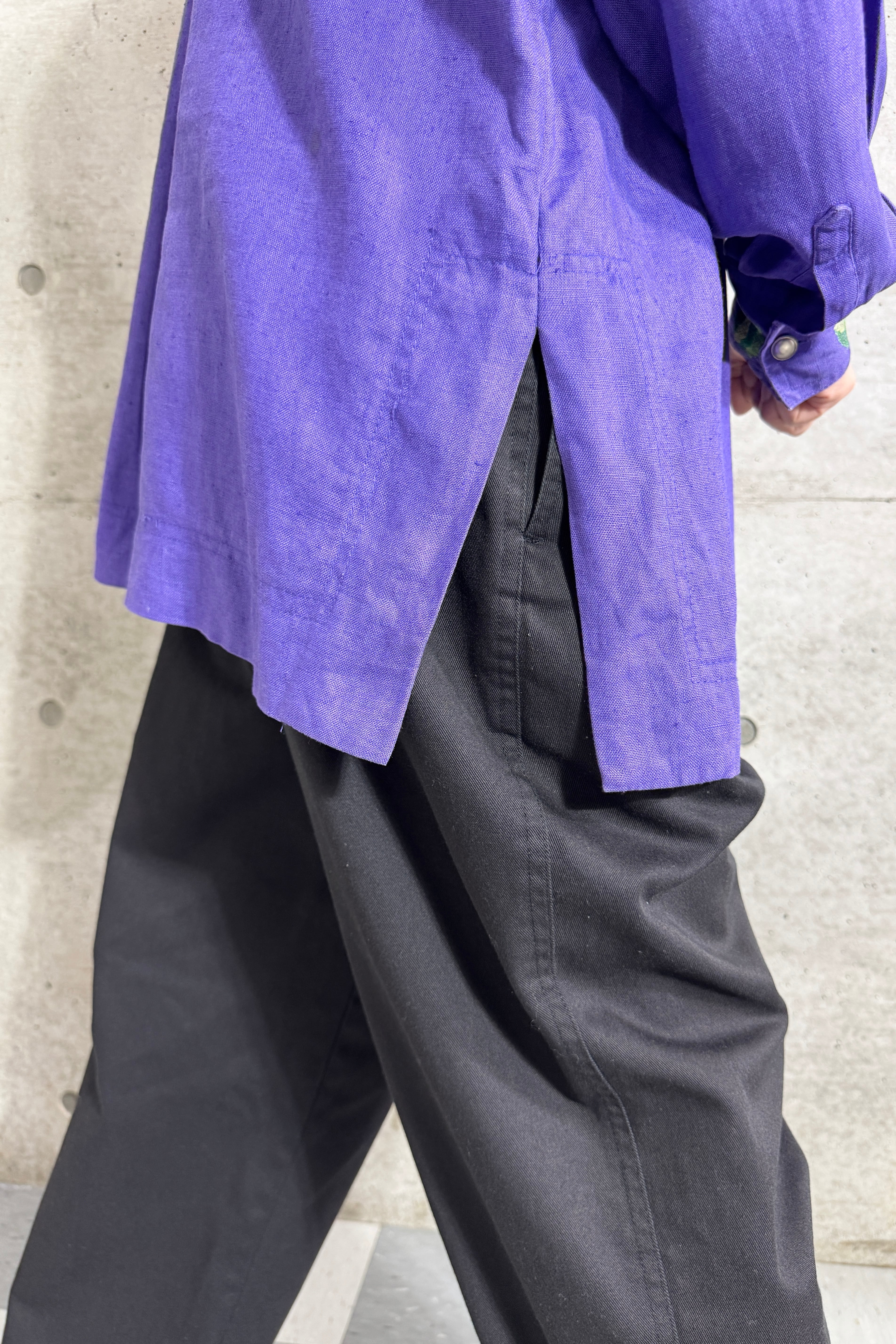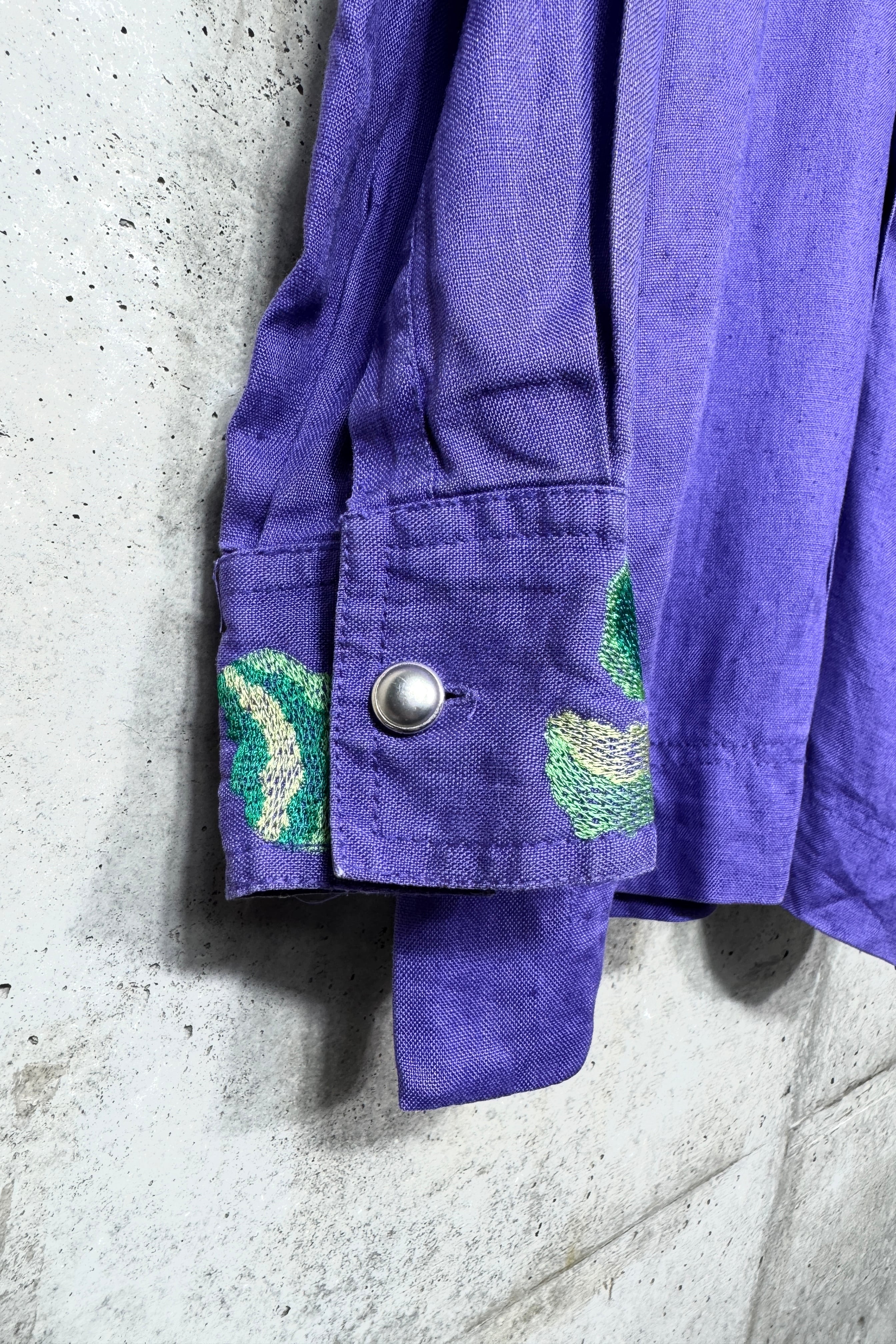 ゆとりのあるサイズ感にパープルの色味(光の関係で色味が濃く見えています。最後の写真が1番近い色味です。)が素晴らしく、そのデザインに合うかの様に入った花の刺繍。
