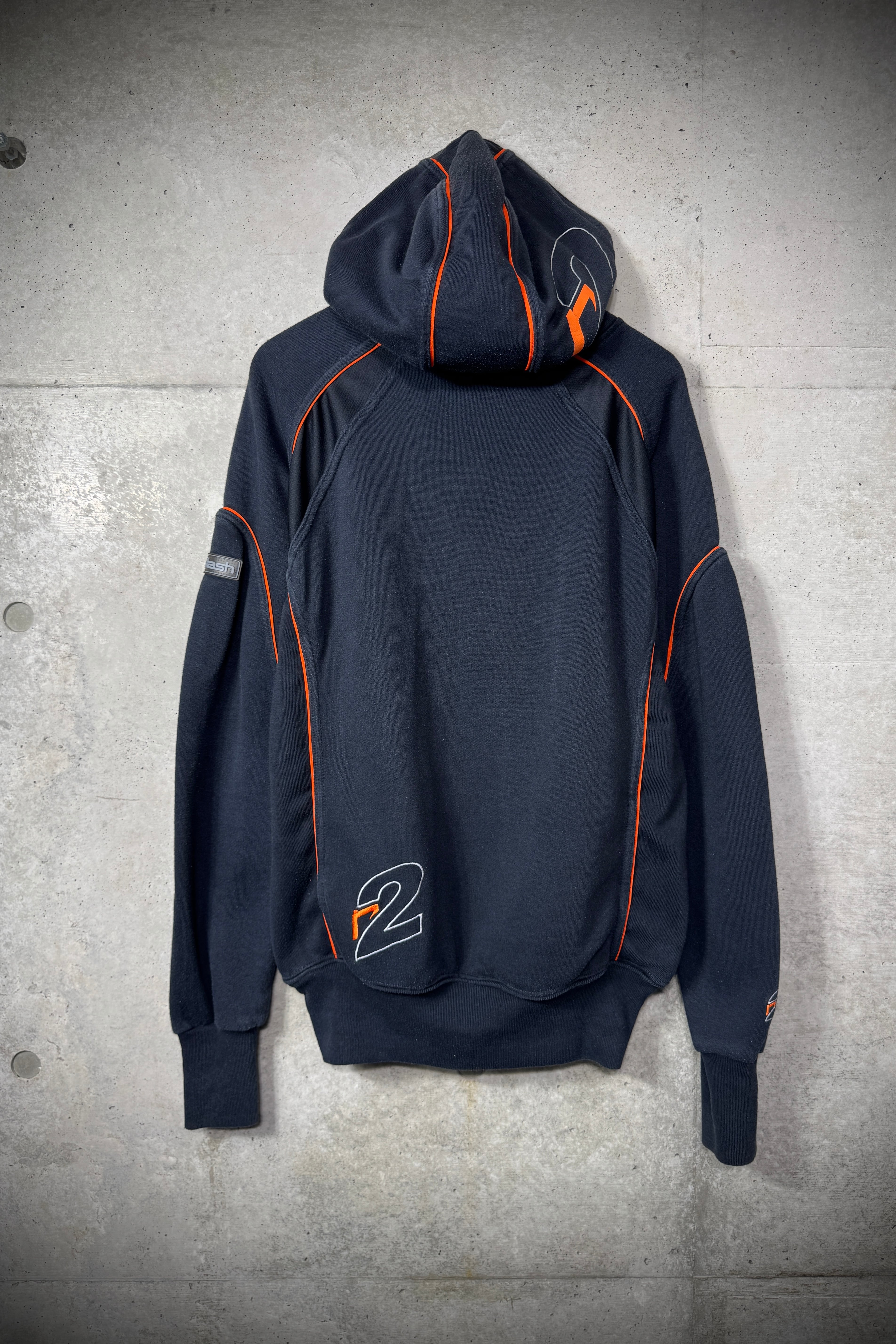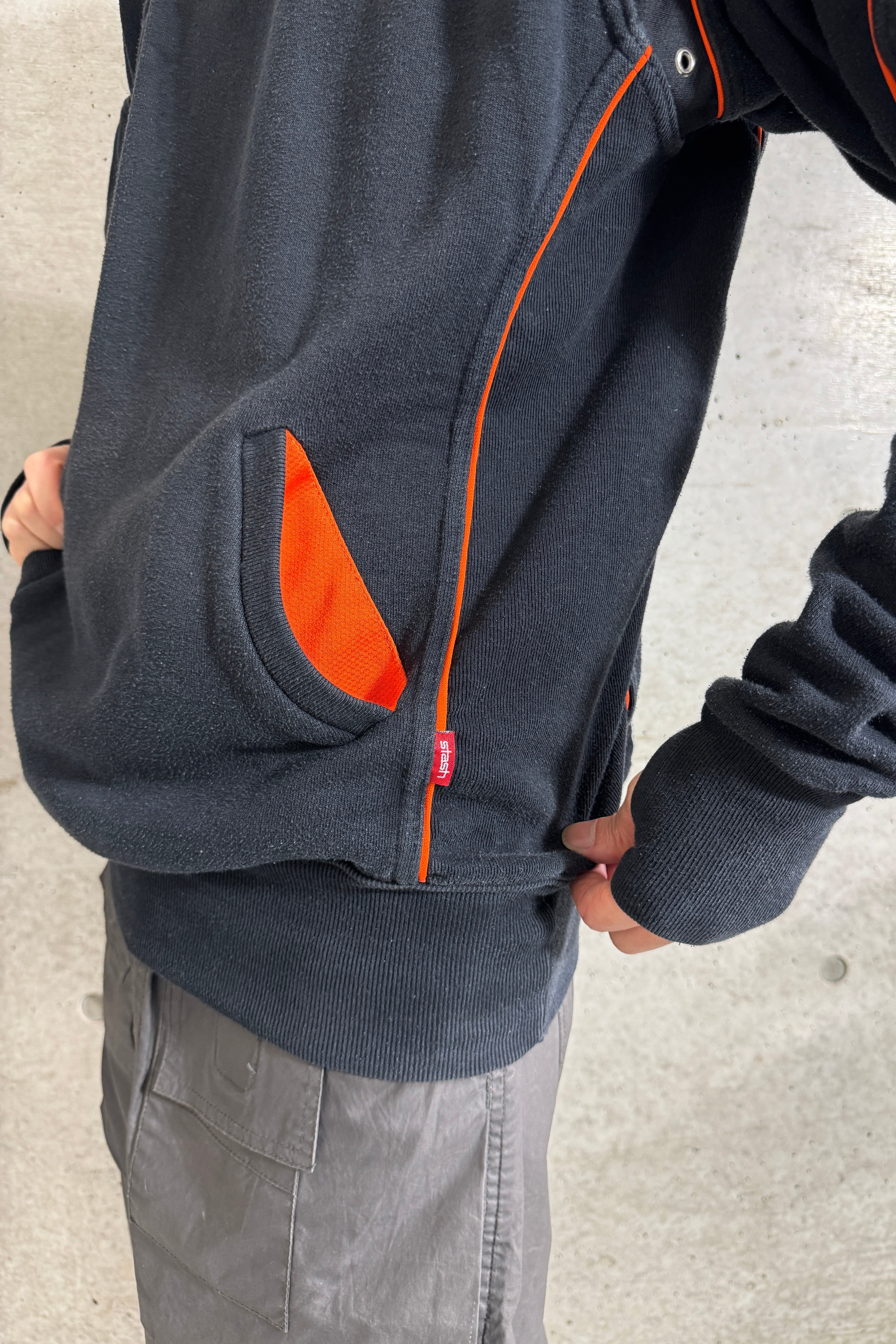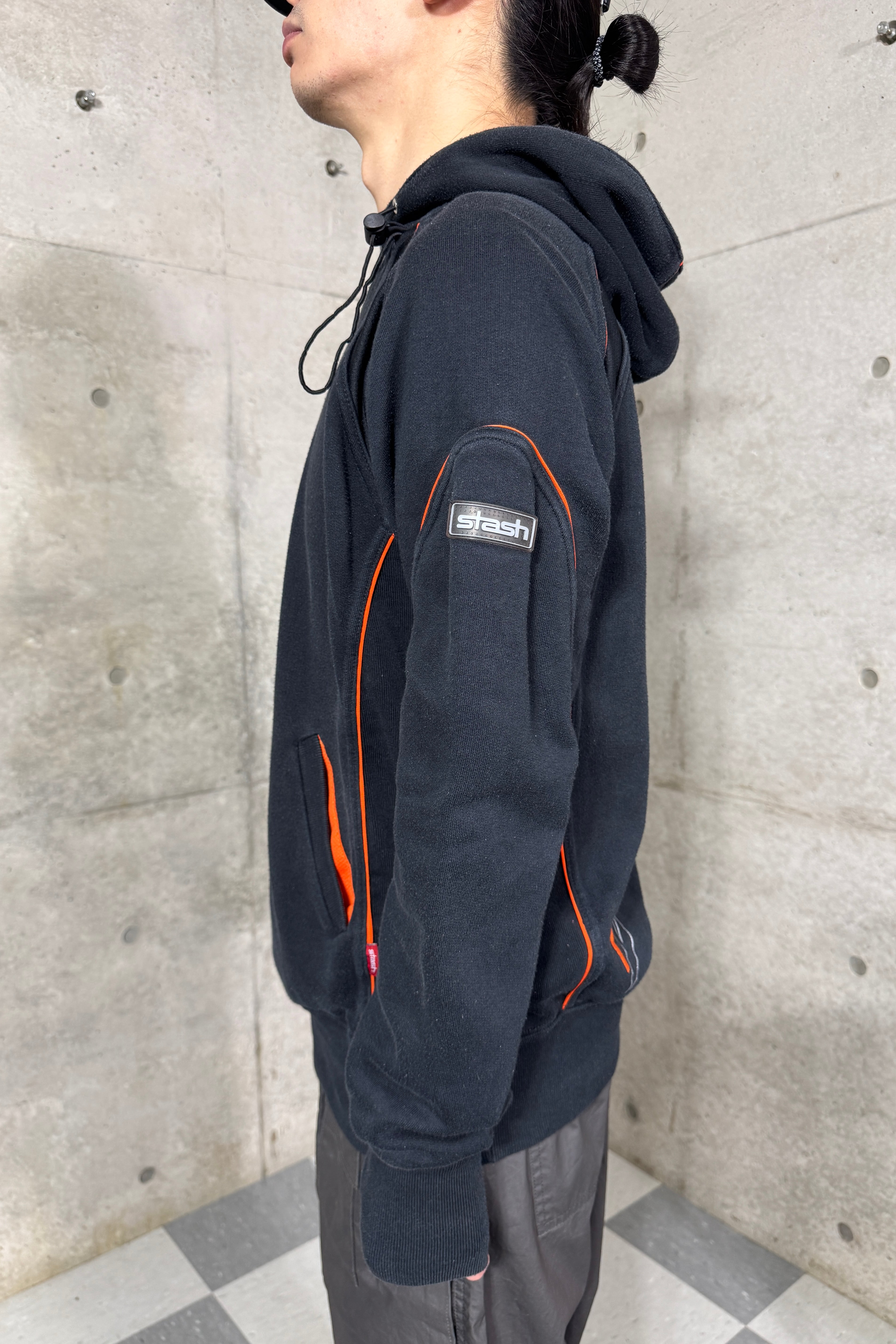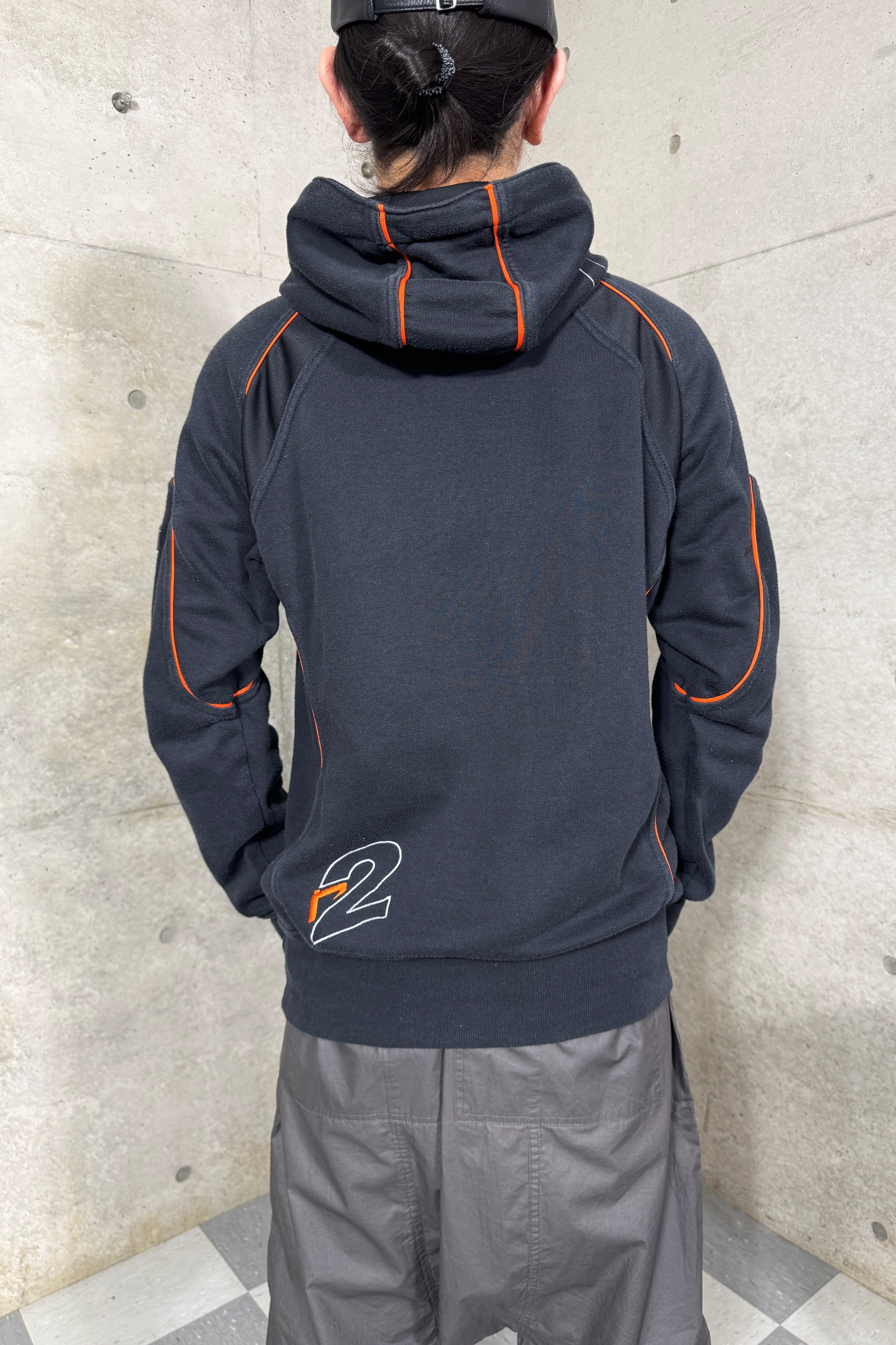 ブラックボディーにアクセントになったオレンジライン、肩から脇にかけてのメッシュ切替、指先のサムホールと様々なギミックが入った面白い1着です。