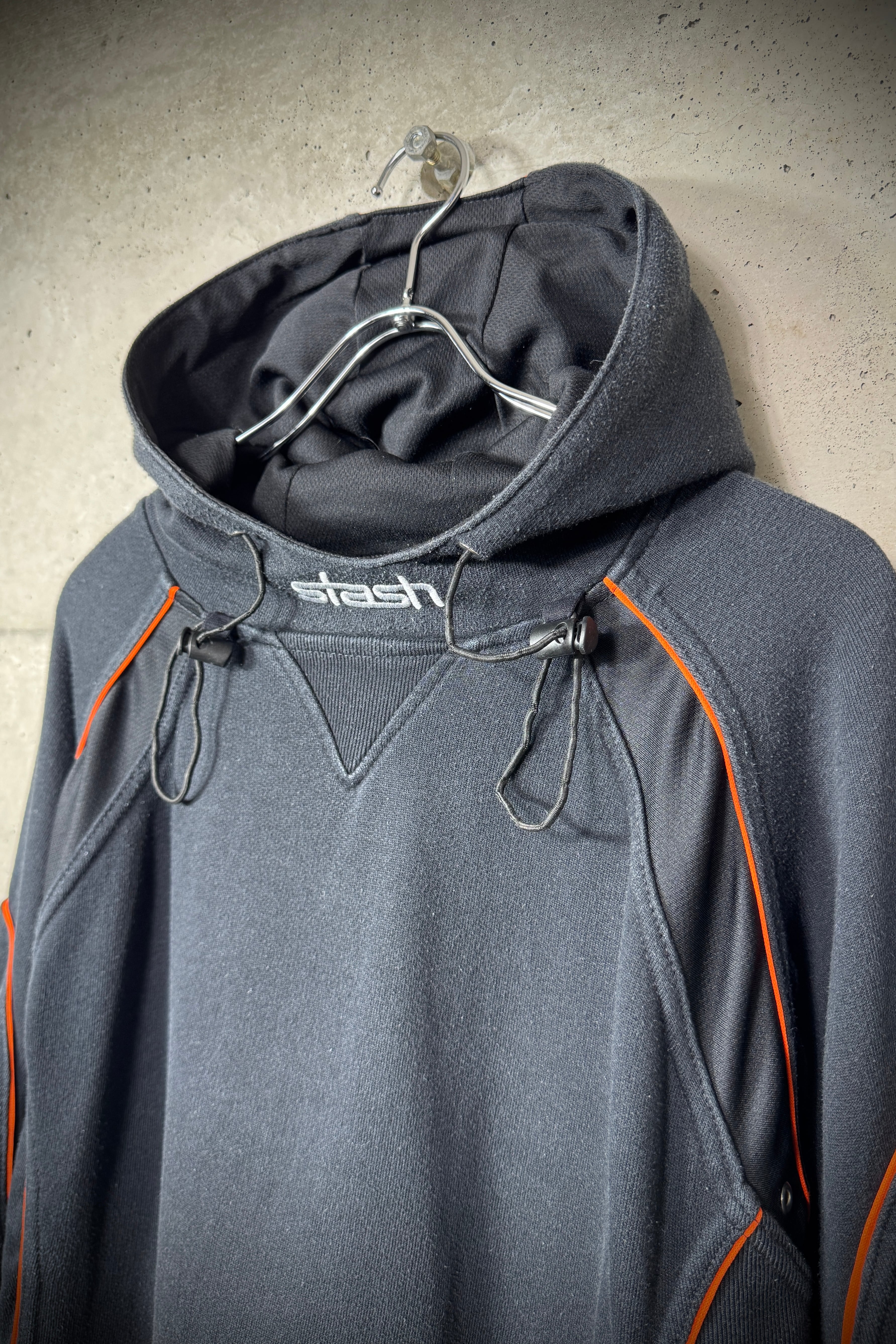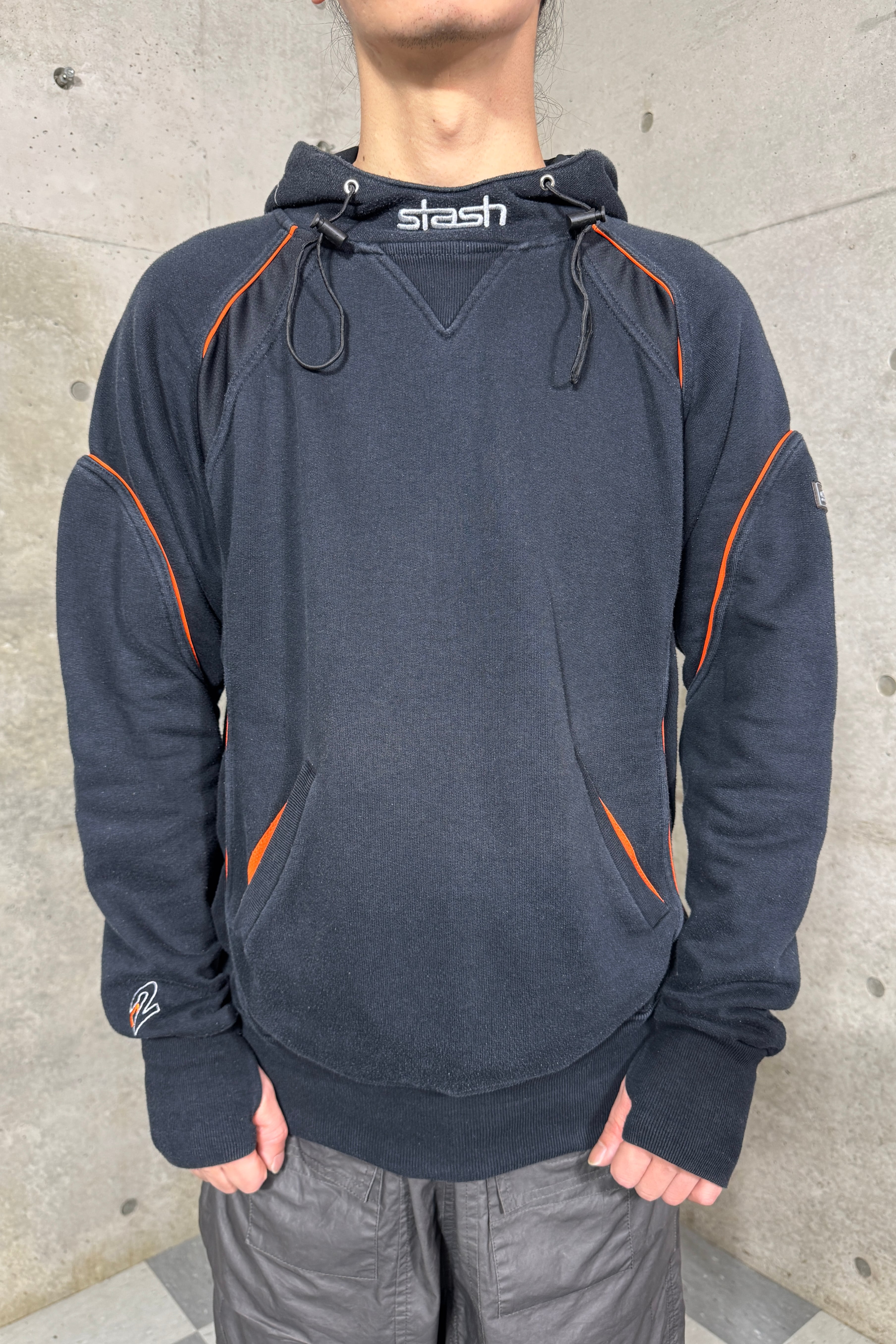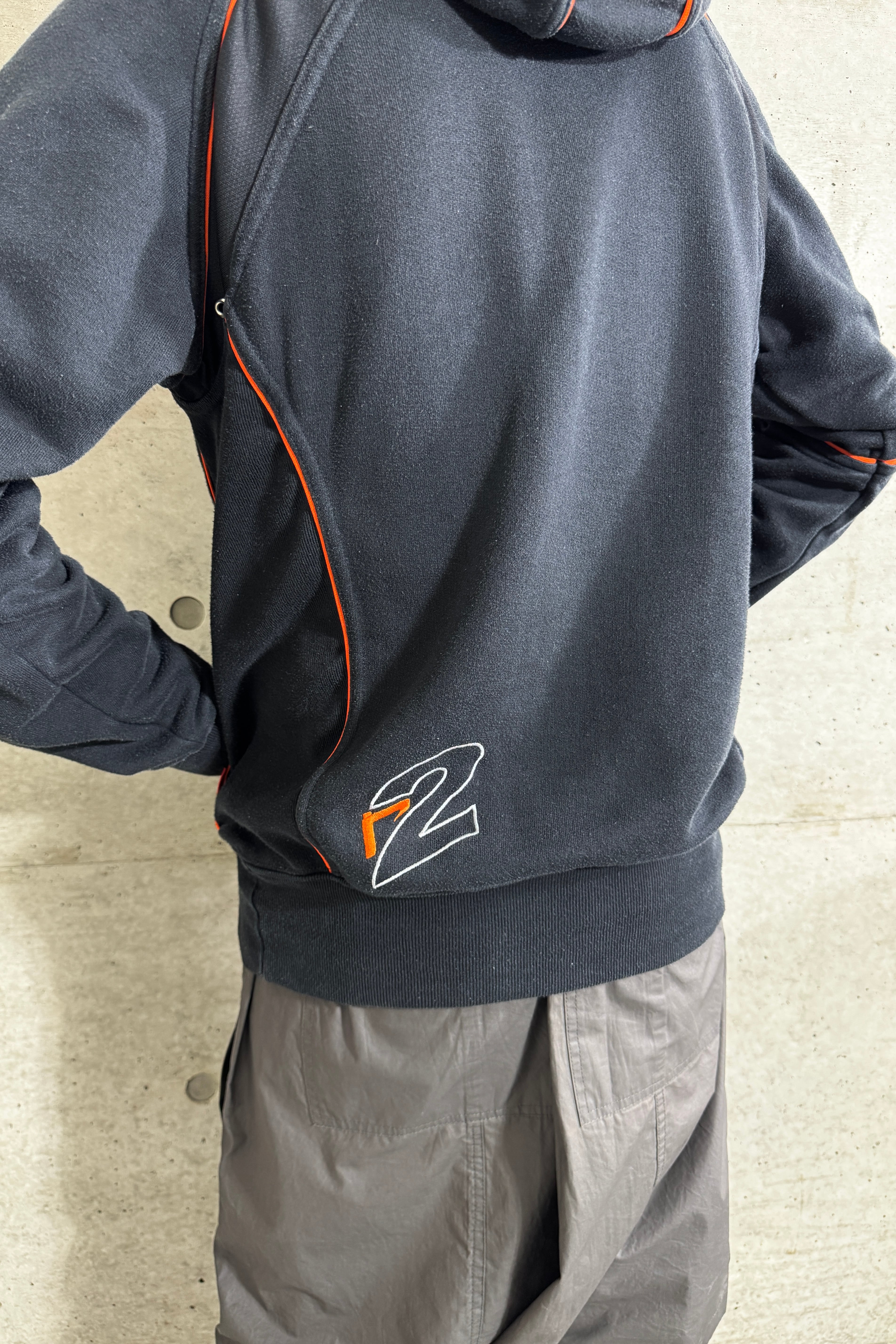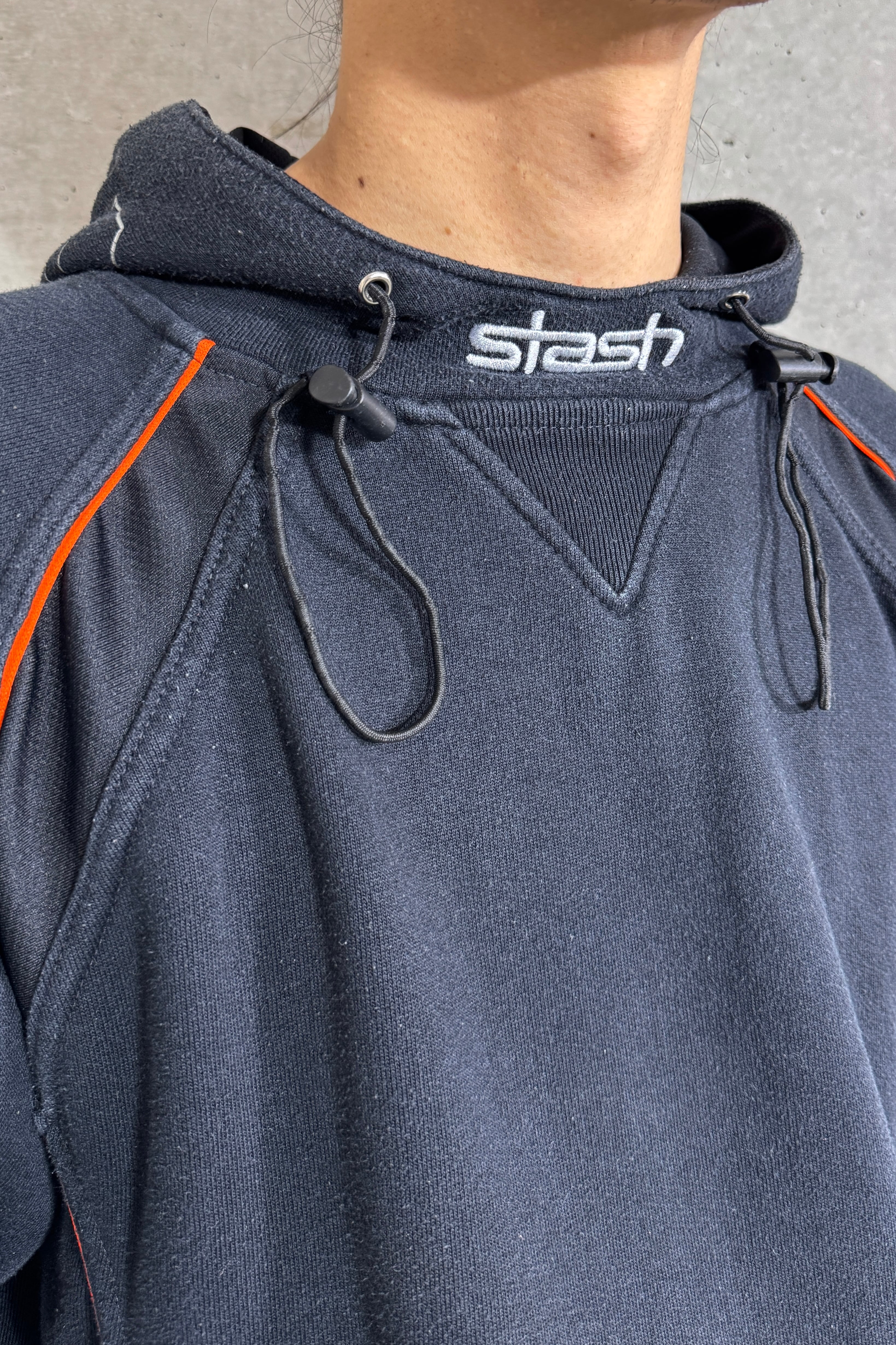 ブラックボディーにアクセントになったオレンジライン、肩から脇にかけてのメッシュ切替、指先のサムホールと様々なギミックが入った面白い1着です。
