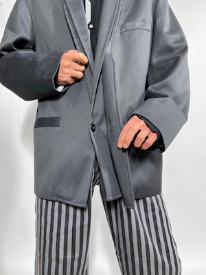 ON OFFどちらでもなり立つテーラードジャケット、ボックス型のシルエットにレイヤードされた不思議なデザイン。今っぽさもあり、どの様に着るかを楽しめるフランス製のジャケット。
