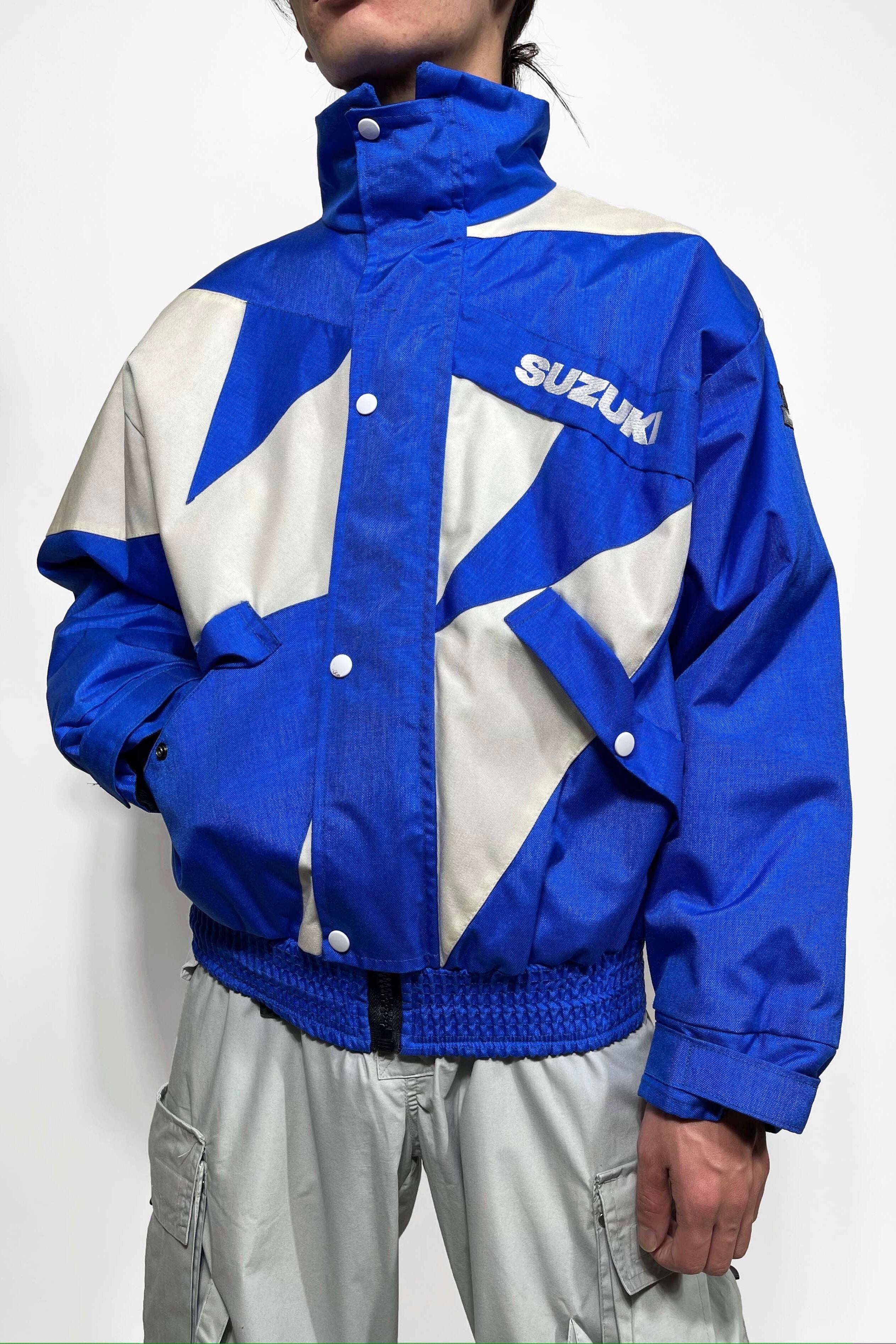 blue×whiteの絶妙な配色と独特な切替が面白く、洋服としてみた時も防寒性に優れていて機能的な部分もしっかりある。