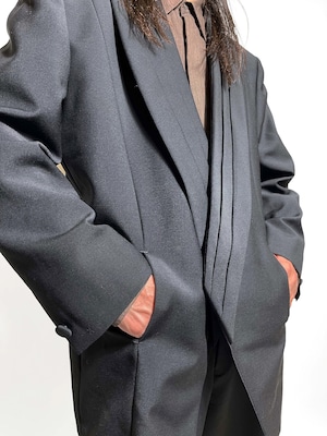 スペンサージャケットとショールカラーを合わせた独特な雰囲気のデザインジャケット。斬新なディテールから出るモードな雰囲気がたまらなくかっこいい。