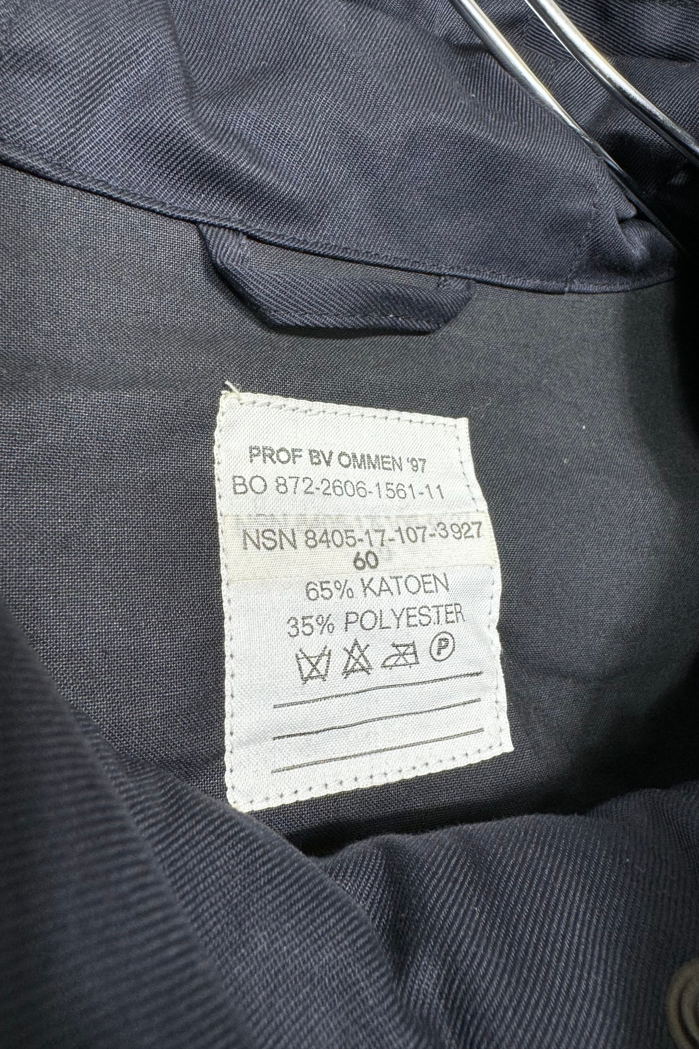 ネイビーボディーに斜めに着いたポケットのディテールやジップ、フードのデザインが面白い