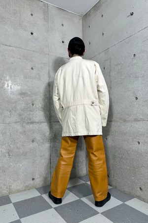 パッとみフレンチヴィンテージかのようなデザインですが、ボタン•ジップデザイン•ポケットなどの細かなディテールが面白いデザインです。