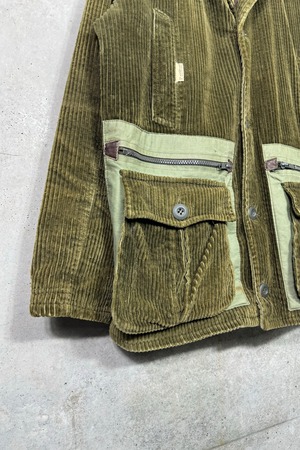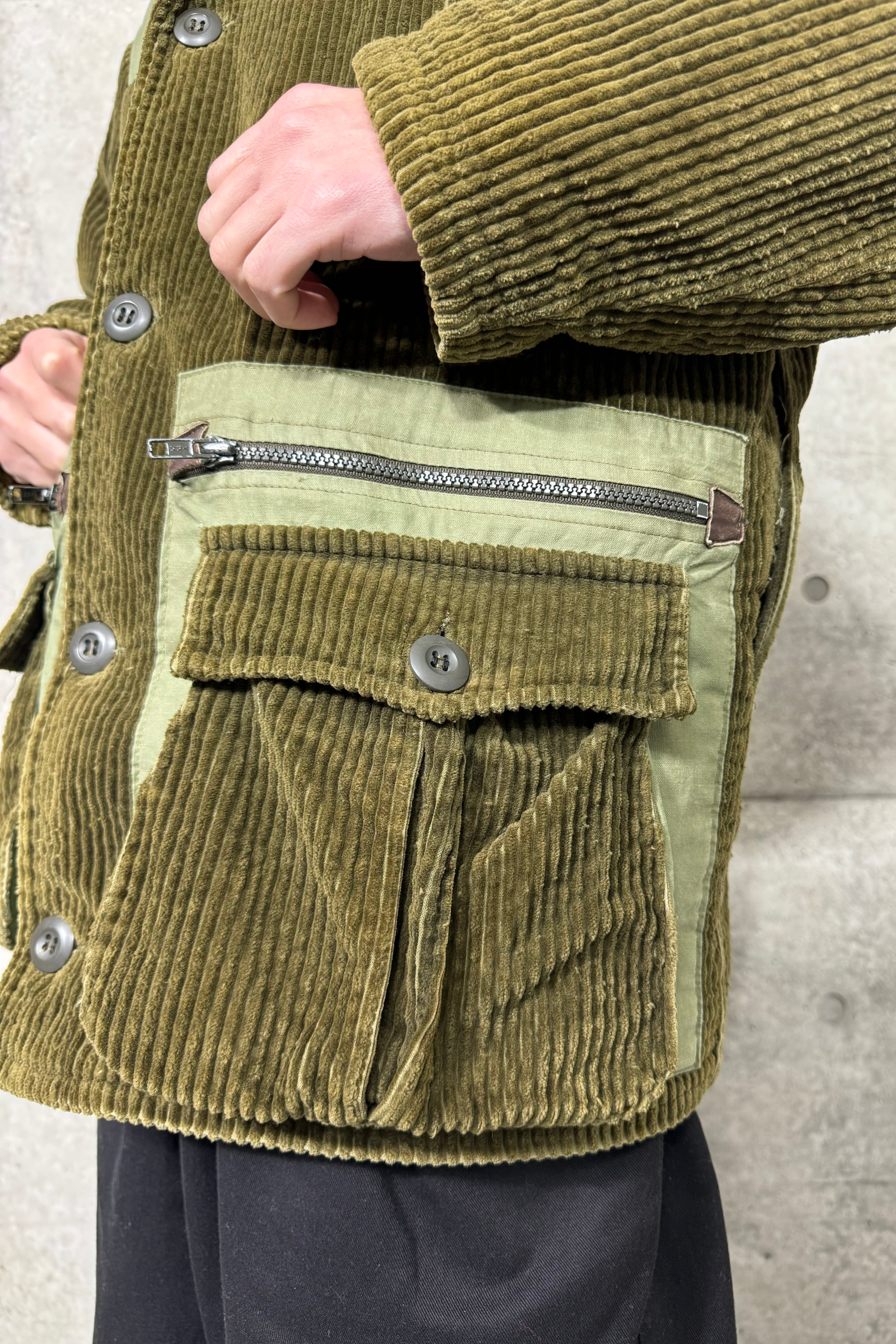 コーデュロイの鈍い光沢に入ったこれでもかと入った様々なディテール。肩の切替や背面のポケットなどハンティングジャケット特有のディテールとクラシックな雰囲気が凄く良い。