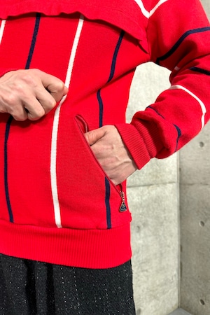 ハーフジップに縦横とラインが入った特徴のあるデザイン、この年代らしい細身のシルエット。
