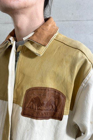 レザーとコットンのが切替された素晴らしいブルゾン