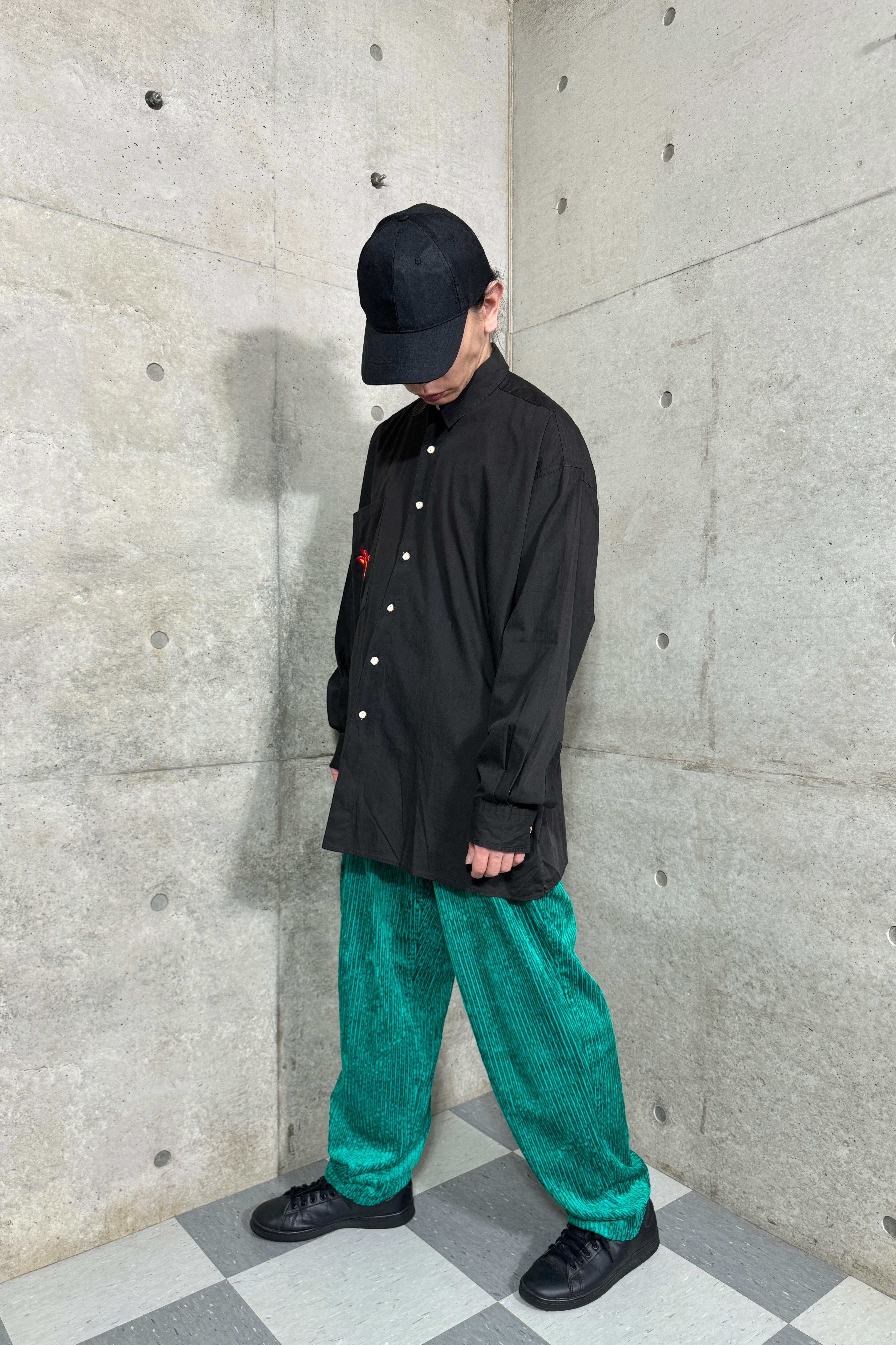 おそらくコットンポリのハリのあるタフな素材感、ゆったりとしたシルエットなので軽く羽織っても良さそうです。